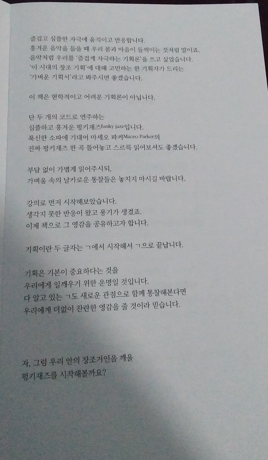 이 책은 어려운 전공서적 느낌이 아니라, 기획의 개념을 보다 이해하기 쉽게 풀어주셨다고 들었습니다. 전공자가 아닌 저에게도 부담 없이 다가올 수 있겠다 싶었고, 그 덕분에 기획의 본질을 차분히 공부할 수 있는 시간이 되지 않을까 기대했습니다.