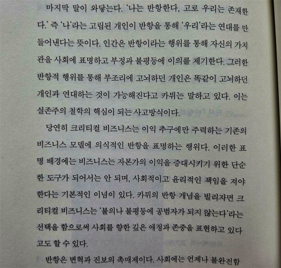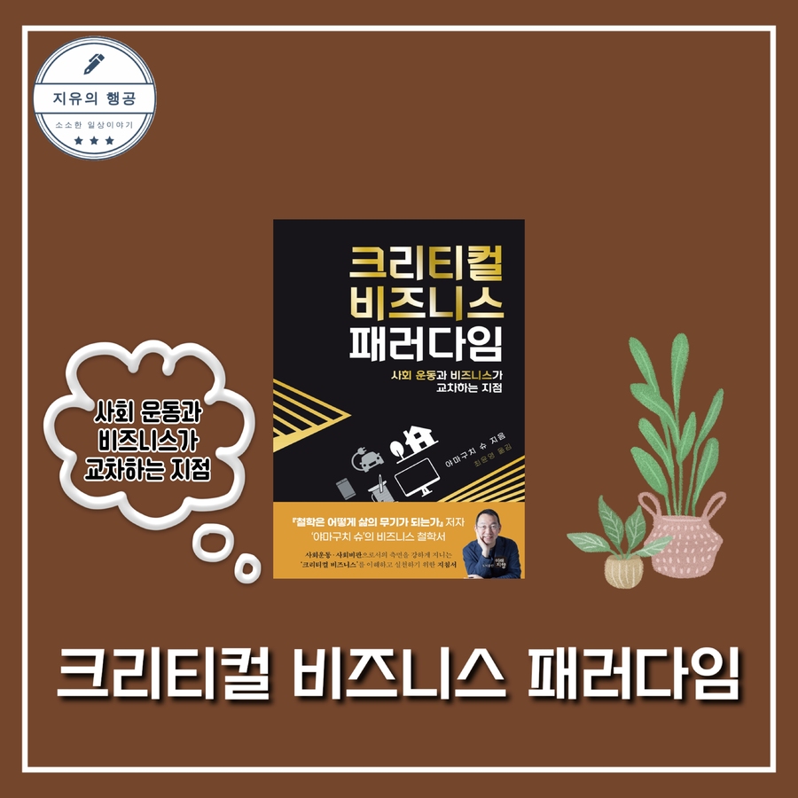 [철학은 어떻게 삶의 무기가 되는가]로 우리에게 잘 알려진 저자, 야마구치 슈의 신간 [크리티컬 비즈니스 패러다임]을 읽어보았다 기존의 전통적인 경제학 이론을 뛰어넘어 비즈니스에도 사회 운동과 철학, 가치관의 확장이 필요함을 강조하는 새로운 패러다임! '크리티컬 비즈니스' 조금은 낯설지만, 사회 운동과 비즈니스가 교차하는 미래지향적 경제 패러다임으로 다가가보자 '크리티컬 비즈니스'란 무엇인가? 새로운 경제 패러다임 : 사회 운동과 비즈니스가 교차하는 지점 'Critical 크리티컬', 한국어로 번역하면 일반적으로 '비판적인'이란 뜻이다. '크리티컬 비즈니스'라니 과연 비판적인 사업이란 무엇이고, 미래로 나아가는 AI시대에 있어 과연 Critical Business가 왜 필요할까? 다수의 합의가 이루어지지 않은 어젠다를 다루며, 일반적으로 받아들여지던 문제를 비판적으로 고찰해 현재와 다른 '이상적인 모습'과 '새로운 문제'를 생성해 비즈니스를 창출한다는 것이다