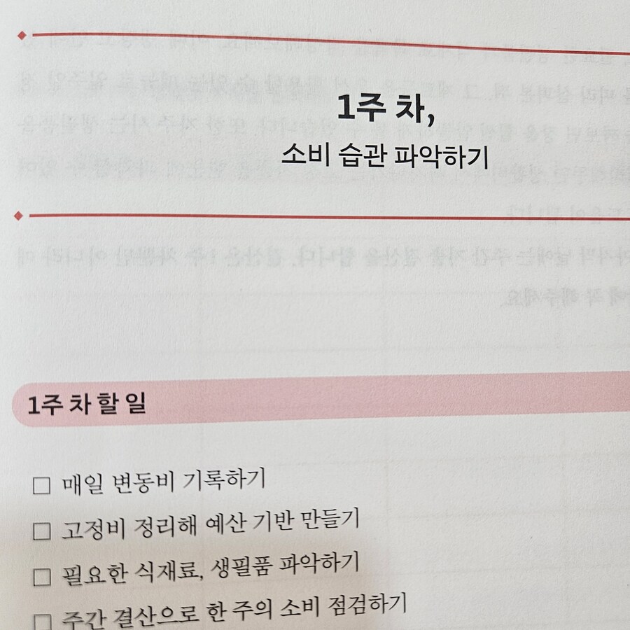 본격적인 가계부 양식을 만나기 전 설명이 참 길다. 당연히 처음에는 가계부 작성법에 대한 자세한 설명이 나오고, 무려 65쪽까지는 생활비 관리, 투자에 관한 이야기, 가계부 제대로 쓰기 전 해야 할 일 들로 내용이 채워져 있다.