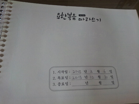 첫 장을 펼치면 요렇게~ 무슨 일이든 목표를 세우는 것이 중요하니까~ 시작일, 목표일, 종료일이 나옵니다. 책을 받고 이틀이 지나서야 이렇게 마음을 다잡고 시작을 했어요~ 목표일을 정할까 말까 고민이 많았는데, 목표를 세우고 시작하는 것이 여러모로 유익하겠다는 쪽으로 마음이 기울어서~ 목표일을 정해봤어요~ 요즘 요한복음 강해를 계속해서 교회를 통해 듣고 있었던 터라, 엄마인 제가 쓸지, 막내 아이가 이 책을 쓸지에 대해 아직도 고민중이랍니다.^^