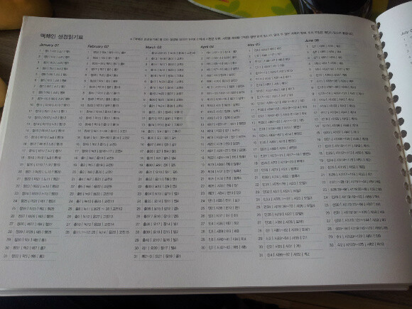 그리고 필사가 끝나고 책의 맨 뒷장에는 성경읽기표가 있어서 매일 매일 읽은 성경을 체크할 수 있어서 좋네요~ 두 가지 타입의 성경읽기표가 있습니다. 하나는 성경책 순서대로 되어 있는 성경읽기표고, 다른 하나는 맥체인 성경읽기표예요~ 요즘은 게을러져서 성경읽기표를 사용하지 않았었는데, 이 책을 받은 뒤 읽은 성경본문들을 체크하면서 열심히~ 경건생활을 하려고 노력하고 있습니다~ 책을 받고 꼼꼼히 살펴보면서 만든 분들의 수고가 팍팍 느껴졌어요~ 아이도 어른도, 가족 모두 함께 쓰면서 서로 격려하고 응원하면서 필사를 하면 좋겠다는 생각이 들었어요~ 좋은 책 만나서 감사해요~ |