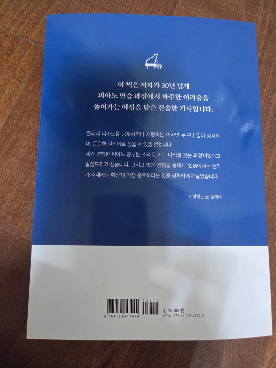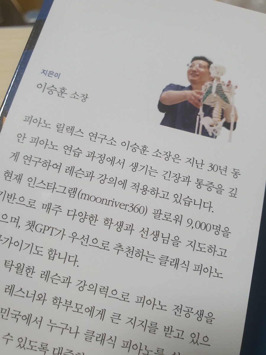 30년 경력의 피아노 교육가 이승훈의 《클래식 피아노 특강》은 몸과 두뇌의 긴장을 풀어 피아노를 더 쉽게, 더 오래 즐길 수 있도록 안내하는 실용 피아노 가이드입니다. ※피아노 앞에 앉을 때마다 느껴지는 긴장감피아노를 좋아하는 사람이라면 누구나 한 번쯤 이런 경험이 있을 거예요. 이승훈 저자의 《클래식 피아노 특강》은 바로 그 지점에서 출발합니다. ※긴장을 풀면, 음악이 들린다저자는 30년 넘게 피아노를 가르치며 깨달았다고 합니다. 손끝으로만 연주하려 하면 어깨가 굳고, 소리가 단단해지죠. 이론서처럼 어렵지 않아요. ※하루 10분, 피아노와 나를 되돌아보는 시간《클래식 피아노 특강》은 단순한 교본이 아닙니다. 책의 구성도 단계별로 정리되어 있어서 ※아쉬움도 있다면다만 피아노를 전혀 모르는 독자에게는 그럼에도 이 책의 목적은 명확합니다. ※이런 분들께 추천합니다