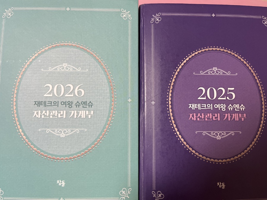 햇수로 이번이 세 번째 재테크의 여왕 슈엔슈 자산관리 가계부입니다. 우선 표지 색깔이 매 해 너무 예쁘고 안의 내용 또한 자산 관리 하기에 아주 편리한 구성으로 이루어져 있습니다. 특히 공모주 투자 리스트 부분과 매달 가입 또는 만기 상품을 기재 할 수 있는 재산 장부란이 맘에 듭니다. 이맘때 쯤이면 항상 기다려지는 상품입니다.