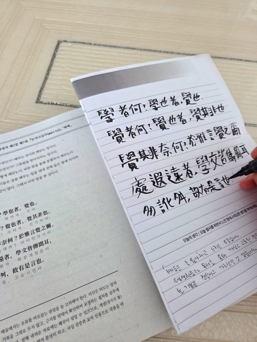 #다산의문장수업 #정약용 #한정호 #책추천 #책소개 #책리뷰 #필사 #필사책 #필사책추천 필사책이 풍년인 한 해인 듯하다. 필사단과 서평단을 하면서 좋은 책을 많이 만나고 있다. 그 중에서도 한자 필사책은 익숙하지도 않고 한자를 알지 못하면 그 뜻을 짐작하기도 어렵다. 그러나 <다산의 문장 수업>은 ‘학이치용 (배우고 묻고 적용하다)’을 그대로 적용해 만든 책인 듯하다. 이 책이 특히나 좋았던 것은 정양용의 글을 현대어로 풀어쓰고 원문과 해석을 동시에 보여주니까 ‘아, 이 문장이 이런 의미구나’하고 이해가 된다. 문장의 배경이나 의미를 알고 필사하니까 한자 필사가 서툴더라도 마음에 깊이 새겨지는 것 같다. 친절하게 이 책의 사용법을 알려주고 시작하니 필사를 하기 전 꼼꼼하게 읽어본 후 시작할 것을 추천한다. 필사한 후에는 ‘오늘의 생각’을 적어보게 되어 있다. 필사하면서 그날그날 만난 문장을 통해 느낀 점이나 생각을 적어 보는 것이다. 나 역시 매일 한 꼭지 타이핑 필사를 한 후에 ‘생각 다시 쓰기‘를 하고 있다. 그 맥락과 닮아서 무척 반가웠다. 막연히 다산의 문장이 좋다 또는 그저 따라 쓴다에 머물지 말고 이 책이 이끄는 대로 해보길 바란다. 이미 정제된 문장을 따라 쓰면서 떠오르는 생각과 느낌을 내 글로 다시 쓰는 시간이 누적되면 분명 문장력도 좋아지고 글쓰기 근육도 동시에 자라는 것을 확인할 것이다. 나는 새벽에 일어나 책을 읽고 필사하며 글쓰기를 이어가고 있다. 이 책을 필사하며 다산의 문장을 만나 보니 그의 곧고 부지런한 성품이 느껴진다. 그런 것 같다. 매일같이 일찍 일어나 혼자 있는 시간을 통해 배움을 게을리하지 않고 스스로를 다스리고 하루를 헛되이 보내려 하지 않는 노력이 쌓이면 그만의 ’고집‘이 생기는 것 같다. 나는 이 ’고집‘을 존경한다. 필사 전 목차를 훑어 보았다. 학이치용/실사구시/반구제기/지행겸진/정심성의/경세설제 이렇게 총 6개의 쳅터로 나뉘는데 어느 것 하나 우리 삶에서 소홀히 다뤄선 안 되는 귀한 말이다. 특히 책을 읽고 필사하며 글쓰기를 삶에 적용하는 과정은 ’학이치용‘과 같은 맥락을 이루고, 간호사로 살면서 사실에 입각해 진리를 구한다는 ’실사구시‘는 생명을 다루는 의료인에게 정확한 판단과 중심 잡힌 마음은 꼭 필요한 자세이기 때문이다. 또한 다산이 세상을 향해 던지는 날카로운 경계의 말들은 지금의 우리 사회와 정치에도 그대로 적용되는 말 같아서 묵직하기만 하다. 이럴 때일수록 ’반구제기‘처럼 스스로를 먼저 바로 세우는 일이 필요하다. 필사를 하기 전 나는 먼저 필사할 책을 쭈욱 훑어 읽기를 먼저 한 후 필사를 시작한다. ’선독서 후필사‘를 기본 원칙으로 하고 있다. 이 책을 서평하기 전 하루에 한 편씩 필사를 시작해 보았다. 혼자 있는 시간에 다산의 문장과 함께 하니 여기저기 구겨지고 얼룩진 삶을 바로 잡아야 겠다는 마음이 앞선다. 나를 먼저 돌아보게 하고, 삶을 어떤 마음으로 살아가야 할지 생각하게 한다. 넘처나는 정보의 홍수 속에서 우리는 어쩌면 명확한 ’기준‘을 잃어버리고 살아가는 것은 아닐까. 말도 많고 탈도 많은 세상과 사람들 관계 속에서 우리는 또 얼마나 흔들리고 상처받는가. 다산의 문장이 이렇게 많은 사람들의 관심을 끄는 이유는 바로 그 명확한 나름의 기준을 찾기 위함이 아닐까? 다산의 문장을 찬찬히 살펴보면 지극히 인간으로서 지켜야할 것들을 이야기 한다. 사람답게 살아가기 위해 지켜야 할 원칙말이다. 우리는 점점 더 애매하고 모호해지는 시대를 살아가게 될지도 모른다. 이럴때일수록 자기 자신을 먼저 세우고 삶을 정리하며 불안하고 혼란을 나름의 잣대로 재해석할 기회가 바로 다산의 문장 필사라고 생각한다. @gbb_mom 단단한맘 @wlsdud2976 하하맘님께서 모집한 서평단에 선정되어 @gutenberg.pub 구텐베르크 출판사로부터 도서를 협찬 받아 작성된 글입니다. |