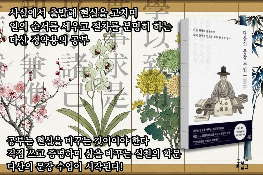 <다산의 문장 수업>은 조선 후기 실학자 다산 정약용의 글쓰기를 현대인의 삶 속에서 다시 읽어내는 책으로, 글쓰기라는 기술을 넘어 사유와 실천의 태도를 돌아보게 만드는 점이 돋보이는 책이다. 책은 다산의 방대한 저술 중 글쓰기와 사고의 본령을 드러내는 구절들을 선별해, 오늘날 우리가 일상과 업무에서 어떻게 생각을 정리하고 표현해야 하는지 구체적으로 안내한다. 단순히 “잘 쓰는 법”을 나열하는 것이 아니라, 왜 쓰는지, 무엇을 위해 쓰는지라는 근본적 질문을 먼저 던지고, 이를 토대로 실천적 문장력을 길러가는 과정이 담겨 있다. 따라서 글쓰기 책이면서 동시에 삶의 태도를 점검하는 인문 교양서의 성격도 강하다. 특히 다산이 강조한 “정확한 판단”, “사실에 대한 검증”, “자기 삶을 돌아보는 성찰”은 현대의 디지털 정보 환경에서도 여전히 유효한 덕목이다. 책의 해설 또한 어렵지 않고 친절하여, 고전이 주는 거리감 없이 누구나 차분히 읽을 수 있다. 전체적으로 <다산의 문장 수업>은 글쓰기 실력을 키우고 싶은 사람뿐 아니라, 보다 단단한 사고와 생활의 질서를 만들고자 하는 독자에게 권할 만한 책이다. 글을 다루는 사람이라면 한 번쯤 곁에 두고 반복해 읽어도 좋을 만큼, 내용과 구성 모두 정돈되어 있다. 최근 읽은 책 중 가장 차분하면서도 깊은 울림을 준 책이 바로 <다산의 문장 수업>이다. 제목만 보면 글쓰기 기술을 가르치는 실용서처럼 보이지만, 막상 펼쳐보면 ‘글쓰기’라는 도구를 통해 삶을 어떻게 바라보고 정리해야 하는가를 알려주는 인문서에 가깝다. 그래서 더 오래 남는다. 정약용 하면 보통 실학자 혹은 학자적 업적을 떠올리기 마련이지만, 그가 남긴 수많은 글들은 “어떻게 생각해야 하는가”를 보여주는 살아 있는 교과서다. 이 책은 다산의 문장과 사상을 현대적 감각에 맞게 풀어내어, 고전이 주는 거리감을 최소화했다. 어려움 없이 술술 읽히면서도, 한 문장 한 문장이 깊은 여운을 남긴다. 인상 깊었던 점은 ‘잘 쓰는 법’만을 말하지 않는다는 것이다. 오히려 왜 써야 하는지, 글이 삶을 어떻게 변화시키는지부터 짚는다. 다산이 강조한 정확한 관찰, 사실의 검증, 스스로를 돌아보는 마음가짐 등은 글쓰기뿐 아니라 일상과 일에도 그대로 적용된다. 특히 “공부는 현실을 바꾸기 위한 것”이라는 메시지는 지금 우리가 흔들리는 순간에도 유효한 조언처럼 다가온다. 글은 결국 자신을 닦는 과정이라는 것을 재확인하게 되는 대목이다. 책의 구성은 부담스럽지 않다. 하루 한 문장씩 읽고 생각을 정리하기 좋은 편집이라, 자기계발 책처럼 꾸준히 곁에 두고 읽기 좋다. 🔶️글을 자주 쓰는 사람은 물론, “생각을 정리하는 능력”을 키우고 싶은 사람에게도 추천한다. 차분하면서도 삶을 바로 세워주는 고전적 울림을 찾고 있다면 <다산의 문장 수업>은 충분히 그 기대를 채워줄 책이다. 📌하하맘 .단단한 맘 서평단에 선정돼서 구텐베르크 출판사로부터 책을 제공받아 주관적으로 작성한 리뷰입니다. |