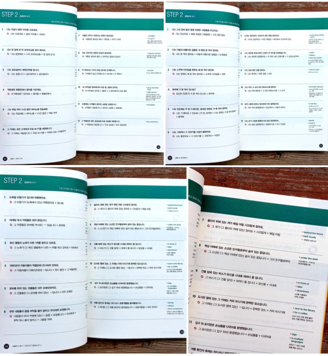 현재 영어로 된 짧은 기초문장을 내 목소리로 녹음 (한국어 →영어)하여 혼자 들으면서 한참 연습하고 있는데 이 짧은문장 하나만 반복하니 조금은 단조롭다는 느낌이... 조그만 더 길게 말하는 거 즉, 짧은 문장 + 짧은 문장으로 이어서 말할수 없을까? 찾고 있던중에 때마침 이 책을 발견하게 되어 주저없이 구입하게 되었다. 영어는 뭔가 뒤에 맥락을 하나하나 추가하는 언어라는 거다. 그런데 우리말의 맥락은 주어와 동사가 있고 그 사이에 추가 맥락이 들어가 있어서 뒤에서 하나씩 맥락을 붙여넣는 영어식 맥락과는 거리감이 꽤 있어서 바로 이 부분이 영어로 간단하게 말하거나 뭔가 나의 생각을 표현하는데 주저하게 만드는... 발목을 잡는 부분이었다. 나는 체중을 줄이려고 매일 아침 공원에서 달립니다 나는 달립니다 나는 공원에서 달립니다 나는 매일 아침 공원에서 달립니다 나는 매일 아침 공원에서 체중을 줄이려고 달립니다 I run in the park every morning to lose weight I run I run in the park I run in the park every morning I run in the park every morning to lose weight 이 중간에 집어넣는 한국말식 맥락을 뒤에서부터 이어 붙이는 영어식 맥락으로 어떻게 바꾸는지 일목요연하게 정리해서 보여주는 책이다. 이 책으로 이어서 말하는 문장연습을 조금씩 해본다면 '짧은 문장 + 짧은 문장'으로 말하는거에 대해 이전보다는 훨씬 덜 스트레스 받고 영어 문장에 익숙해질 수 있지 않을까? 기대해 본다 ![]() 이 책도 본문은 모두 한글문장으로만 되어있고 맨 뒷부분에 정답지가 영어문장으로 이루어져 있다