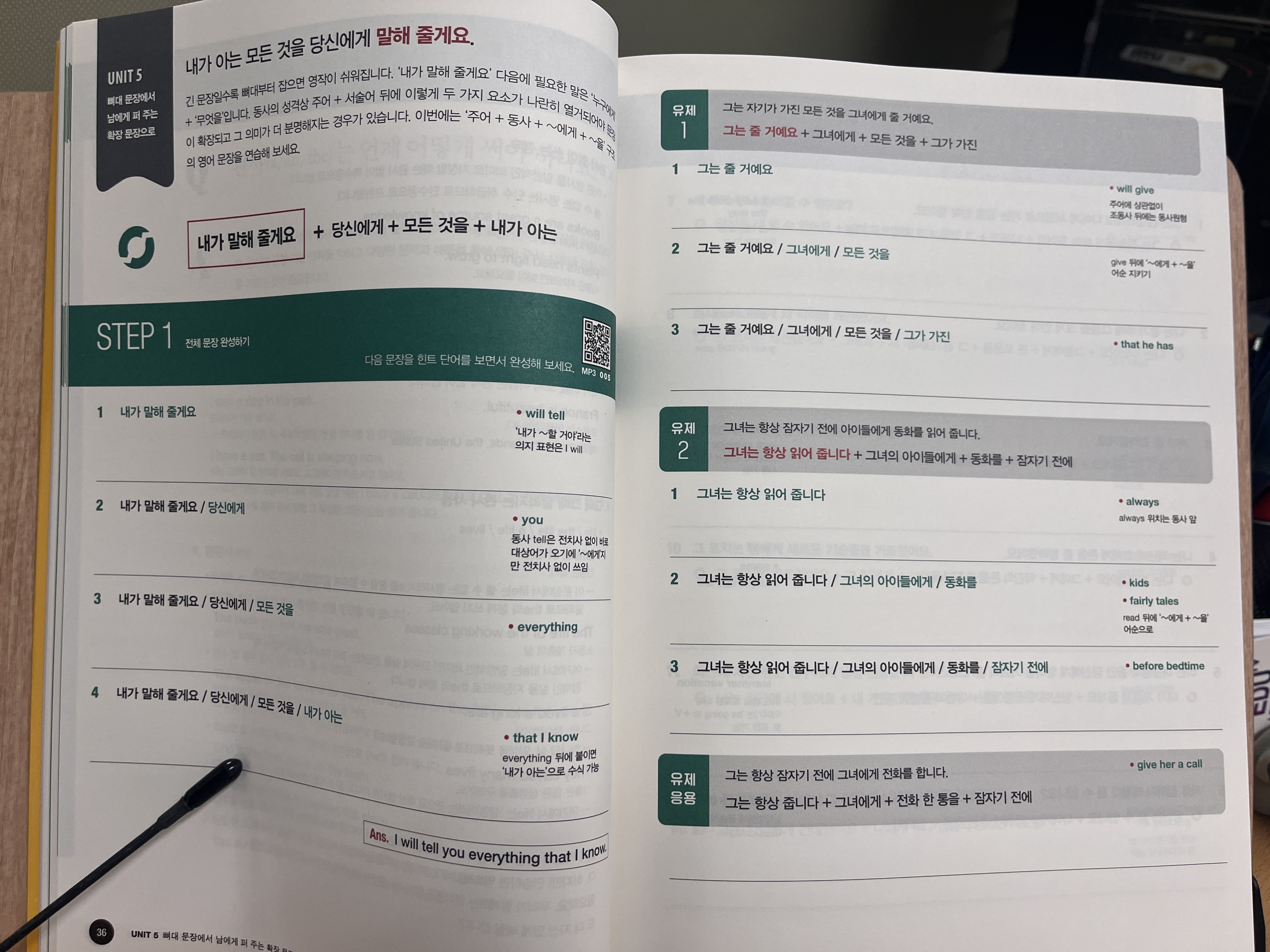 문장을 익히면서 말도 잘 익숙해질 수 있도록 QR코드를 들어가서 사람in 블로그에서 음원을 들을 수 있다.