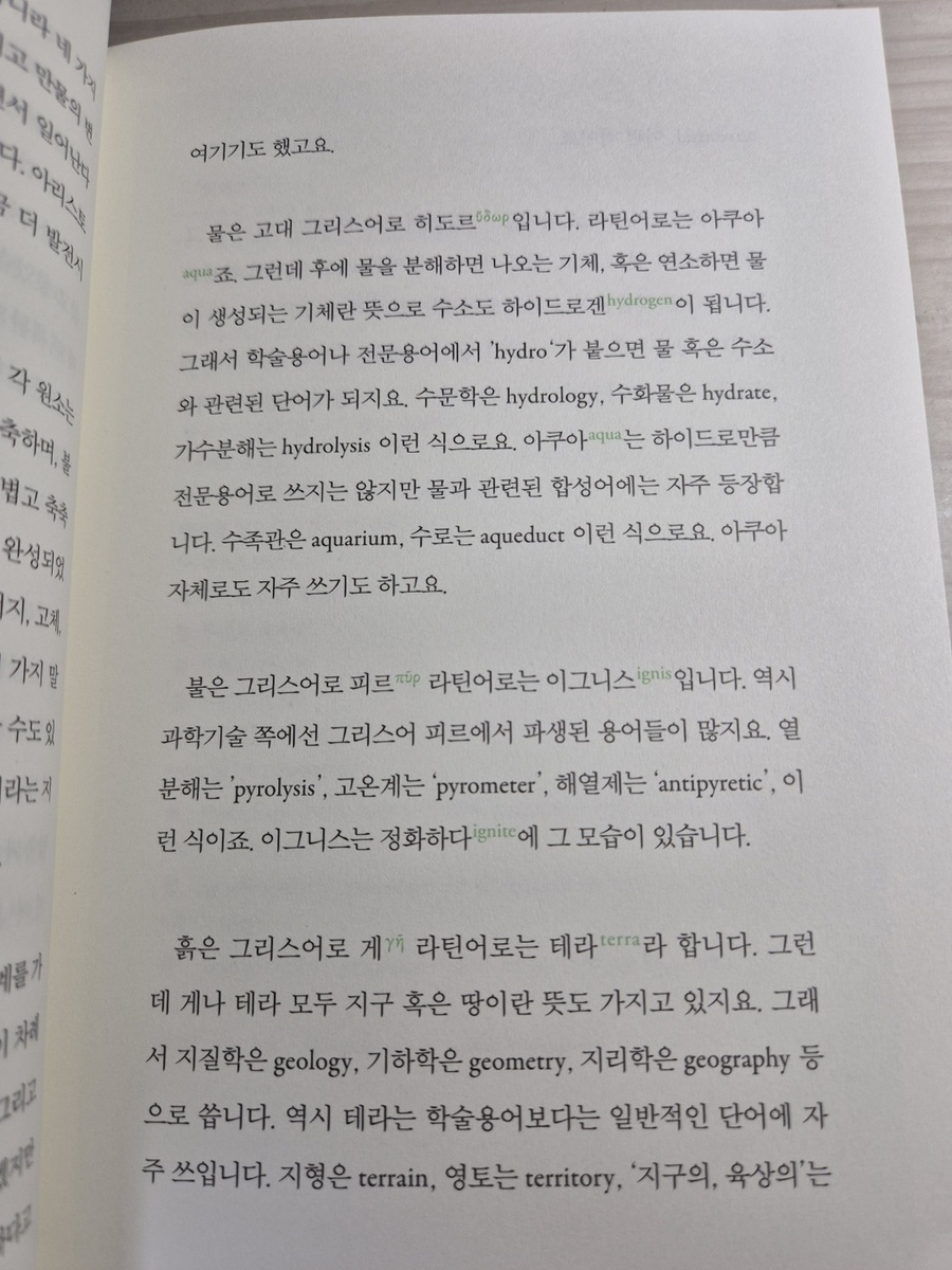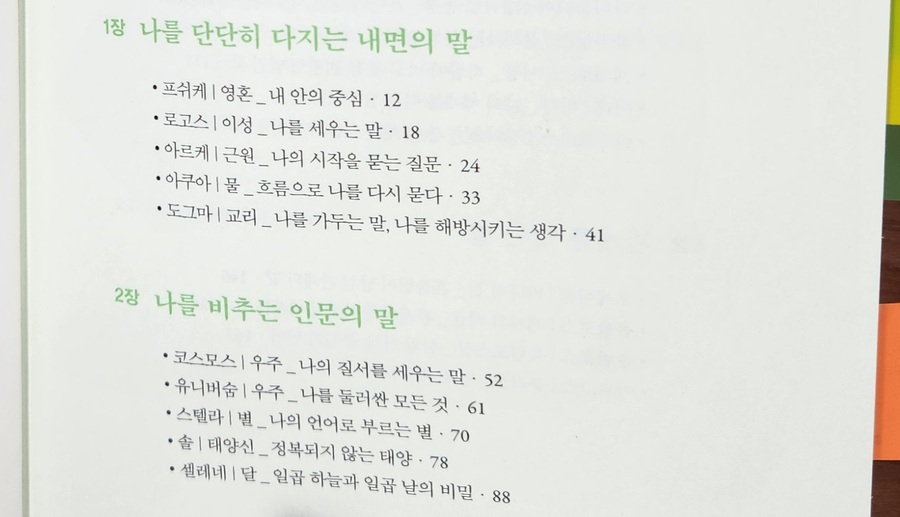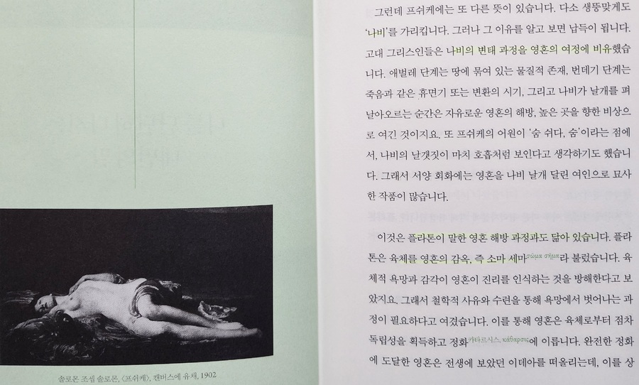 [ 출판사로부터 도서를 제공받아 작성한 리뷰입니다. ] 카르페 디엠(Carpe diem), '현재 오늘을 즐겨라'라는 라틴어 문구인데 영화를 통해 처음 알게 된 뒤로는 마음에 새겨둔 말이 되었네요. 낯선 언어가 주는 신비로움과 그 안에 담긴 뜻이 강렬하게 남았던 것 같아요. 우리는 언어를 통해 세계를 이해하고 경험하지만, 때로는 언어 자체가 새로운 생각과 상상을 펼치는 날개가 될 때가 있어요. 《나의 내면을 채워주는 어휘 수업》은 그리스어와 라틴어에서 온 단어들로 나를 다시 세우고, 단단한 내면을 다지는 책이네요. 저자는 그리스어와 라틴어를 인간이 스스로를 이해하고, 신과 자연, 타인과 세계를 탐구하기 위해 만들어 낸 지적 유산이자 마음의 그림이라고 표현하면서 여기에 소개된 단어들을 하나씩 정성껏 소개하고 있어요. 일상 생활에서 수없이 사용하고 있는 언어라서, 언어가 가진 힘을 간과하며 살아온 것 같아요. 무심코 내뱉었던 말들, 만약 언어의 본질과 그 힘을 인지하고 있었다면, 그때 입을 다물고 침묵을 선택했을 텐데... 신기하게도 익숙하지 않은 그리스어와 라틴어 단어들을 통해 언어가 만들어내는 사유에 대해 몰입하게 되네요. 프쉬케는 '숨쉬다'라는 동사에서 유래하여 점차 영혼을 뜻하는 말로 확장되었고, '나비'라는 뜻도 있는데, 고대 그리스인들은 나비의 변태 과정을 영혼의 여정에 비유하여 나비가 날개를 펴 날아오르는 순간이 자유로운 영혼의 해방, 높은 곳을 향한 비상으로 여겼다고 해요. 그리스어에는 프쉬케와 비슷하지만 다른 의미의 프네우마가 있어요. '불다, 숨 쉬다'라는 뜻의 동사 프네오에서 파생된 말로 숨결, 영, 정신을 뜻하지만 철학적으로 구분되는데, 프쉬케는 개인의 영혼이라면 프네우마는 바람처럼 흐르는 우주적 생명력을 뜻한대요. 우리가 항성을 '별'이라 부르는 것처럼 고대 그리스에서는 아스테르가 일반적으로 '별'을 의미하는 단어였고, 천체 일반이나 '별자리'를 가리킬 때는 아스트론, 고대 로마에선 아스토론에서 연유한 라틴어 아스트룸이나 stella를 '별'을 지칭하는 단어로 자주 썼다고 하네요. 나만의 언어를 만든다면 '별'을 대신할 수 있는 단어가 뭘까를 한참 생각했는데 경이로움을 나타내는 감탄사가 제격일 것 같아요. 소리 내어 말할 수는 없고, 혼자 마음으로만 외치는 단어로 남을 것 같네요. 처음 글을 배우던 시절로 돌아간 듯, 그리스어와 라틴어에서 온 단어들의 의미를 차근차근 곱씹어가는 과정이 흥미롭고, 특별한 사유의 장이 열린 것 같아요. 언어로 통하는 세계, 하나의 단어를 알고 나니 새로운 세계를 마주하게 되네요. 저자의 말처럼 나를 다시 세우고, 어휘 하나하나를 통해 내면의 질서를 다지는 뜻깊은 언어의 여정을 경험했네요. |