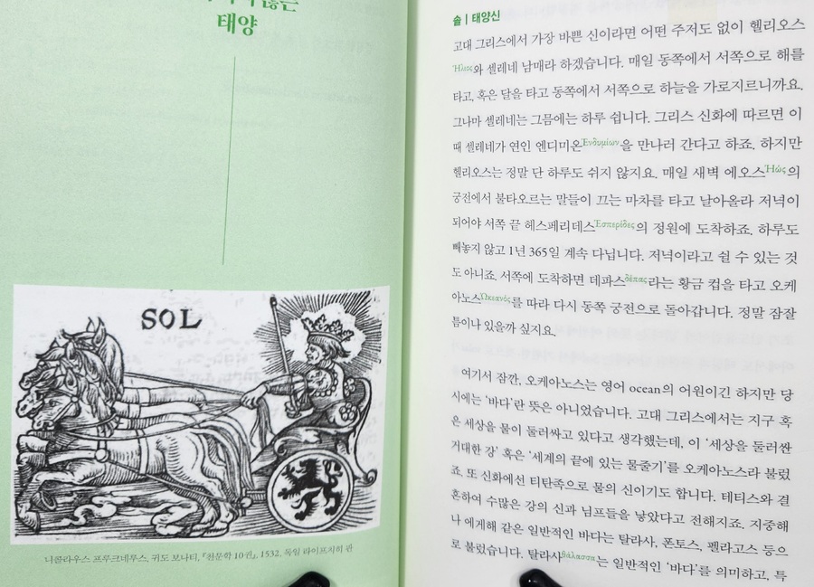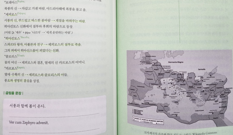 >>협찬도서<< 술술 읽힌다. 그림도 있고 글자도 크다. 200페이지 밖에(?) 안된다. 서양 문화의 근본이고 뿌리로 볼 수 있는 그리스와 로마. 영어, 불어 등 현대 언어에 까지 영향이 남아 있는 고대 그리스어와 라틴어. 헤세의 소설에 필수로 등장하고, 아인슈타인도 제일 싫어했다는 라틴어 수업. 지금은 없어진 우리나라 한자 수업하고 비슷했나 보다. 서양 뿐만 아니라 내 주변에도 널려있다. 화장품 이름, 정장 브랜드, 자동차 이름.. 뜻도 모르는데 기원을 어찌 알겠는가.. 포세이돈, 옴팔로스, 올림포스, 아르고스 그리스 로마 신화, 고대 철학, 현대 과학, 고대사와 예술에 이르기 까지 해박한 지식을 가진 저자는 재미난 옛날 이야기를 들려주는 착한 선생님 같다. 어린 시절 시간 가는 줄 모르고 보았던 역사, 과학, 신화에 관한 어린이 권장 만화가 떠오른다. 우로보로스, 팍스 로마나, 아가페, 에트루리아 플라톤, 아리스토텔레스, 알렉산더 대왕.. 그리스 도시국가에서 마케도니아, 지중해, 소아시아, 북아프리카 까지.. 당시 국가 세력 관계와 학문, 예술의 발달 과정, 그리고 현재까지 남아있는 고대 그리스어에 관한 이야기가 이어진다. 프쉬케, 로고스, 아르케, 아쿠아, 도그마 갈리아, 오스카, 삼니움, 에트루리아인들 사이에서 라틴족이 성장하고 세력을 확장하여 결국은 대제국을 형성하는 과정과, 로마제국의 정치, 군사, 종교를 설명하며 현재까지 영향을 미치고 있는 라틴어의 잔재를 이야기 한다. 라티푼디아, 불카누스, 제피로스, 마레, 아켈로오스 그리스,로마신화에서 시작하여 빅뱅이론, 다중우주 등 현대 물리, 천문학 까지 재미난 이야기는 줄줄이 비엔나로 쏟아져 나온다. 코스모스, 유니버숨, 스텔라, 솔, 셀레네 좋은 치매 예방법 중 하나가 외국어 공부라 한다. 처음 보는 단어를 익히고 문장을 구성하면서 새로운 뇌 회로를 구성하는 것일테다. 일상 대화에 어려운 사자성어를 섞고 고대 그리스어, 라틴어 얘기를 꺼내면 잘난 척하는 사람으로 보인다. 난체하는 인격과는 별개로 사고의 영역이 조금이라도 넓다는 것은 인정해야할 듯하다. 내 사고의 한계는 내 언어의 한계와 일치한다. |