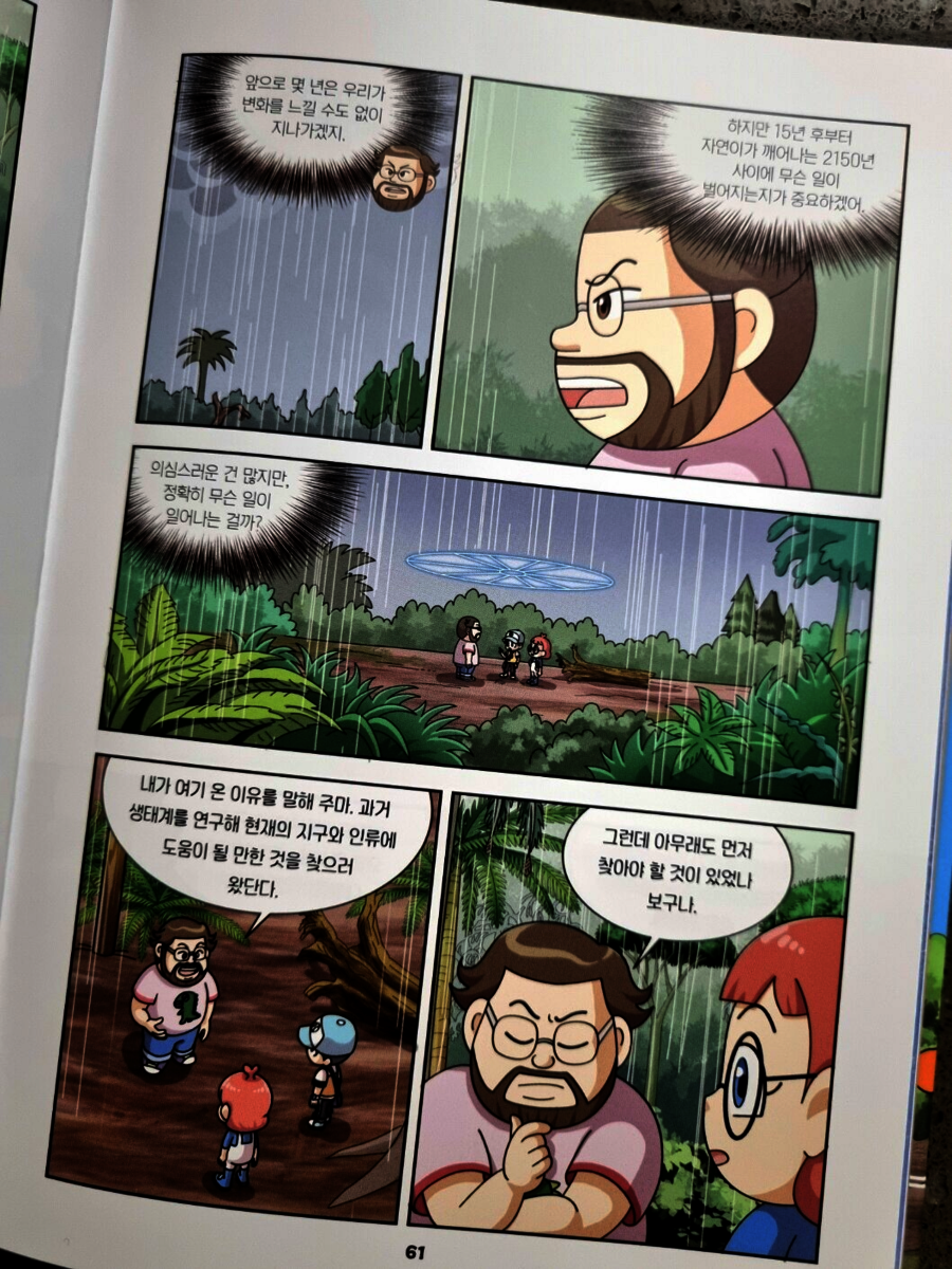 이 책은 단순한 지식 전달형 과학 만화가 아니었습니다. 아이와 함께 멸종의 원인을 고민하고, 우리가 할 수 있는 작은 실천을 이야기하게 만드는 ‘대화의 책’이었습니다. 고생대에서 이어지는 지구 역사 속 거대한 흐름을 아이 눈높이에 딱 맞게 풀어주면서도, 현재 우리가 직면한 기후 위기를 진지하게 바라보도록 안내하는 책- 그래서 더욱 고마웠습니다. 벌써 2권이 정말 기다려지는 이유이기도 합니다.