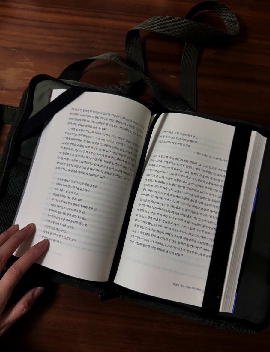 수납공간과 생활방수 안전하게 내용물이새지않도록 잘들고다닐수있게 달린 지퍼, 가방을 메고다닐수있어 좋아요 그런데 저같은사람은 사이즈가좀더컷으면하는 아쉬움이 있습니다 좀더큰 사이즈책을 담을수있는사이즈면 좋았을거같아요 읽으려고둔 좀더큰 사이즈책이 꽤있다보니 아쉬움이 사이즈엿네요. 생활방수되는점이 매우좋아요 혹시나책에 물이젖으면 너무 스트레스받다보니 생활방수가 북백을 선택하는 가장 큰 요소엿습니다 |