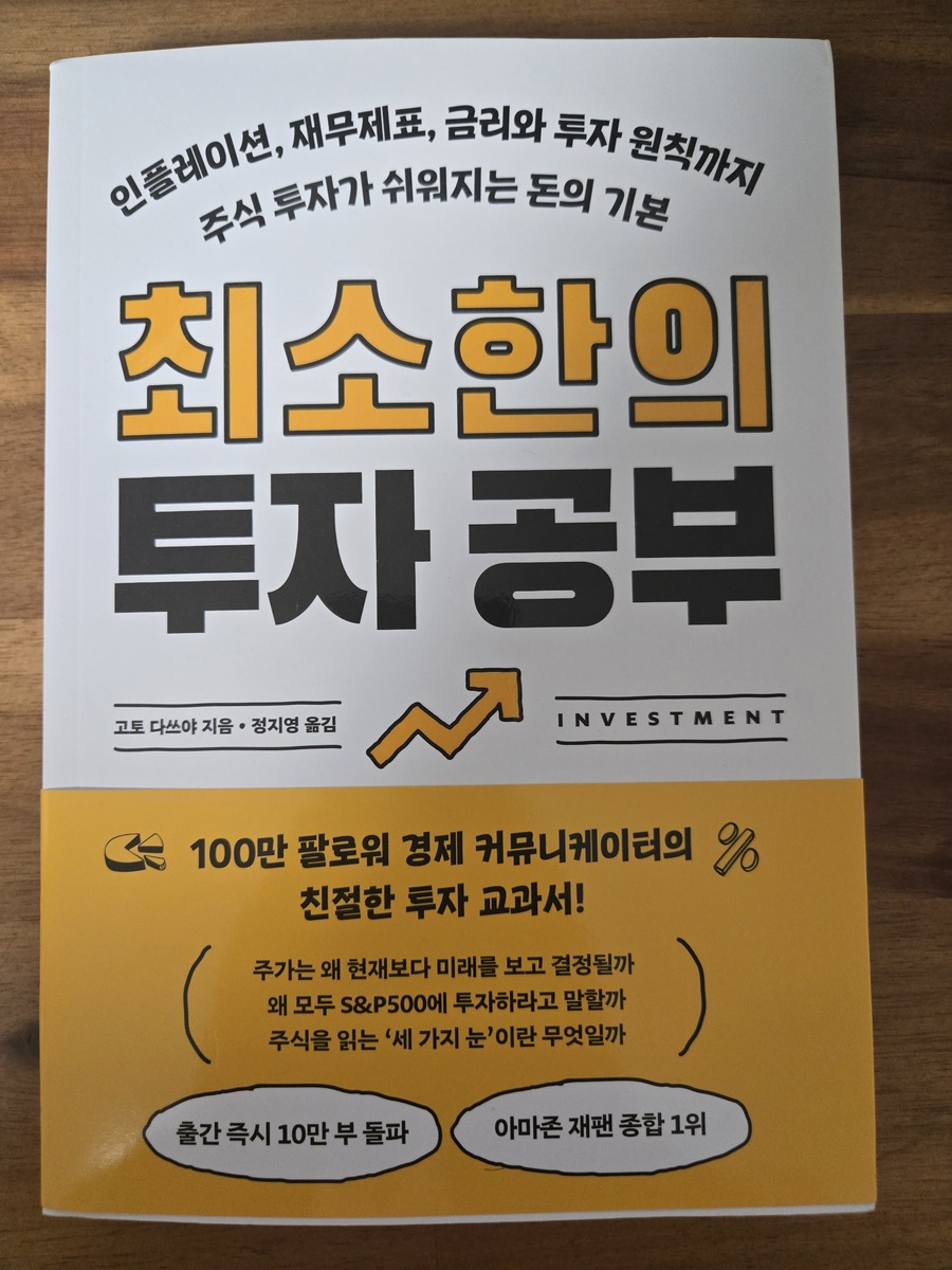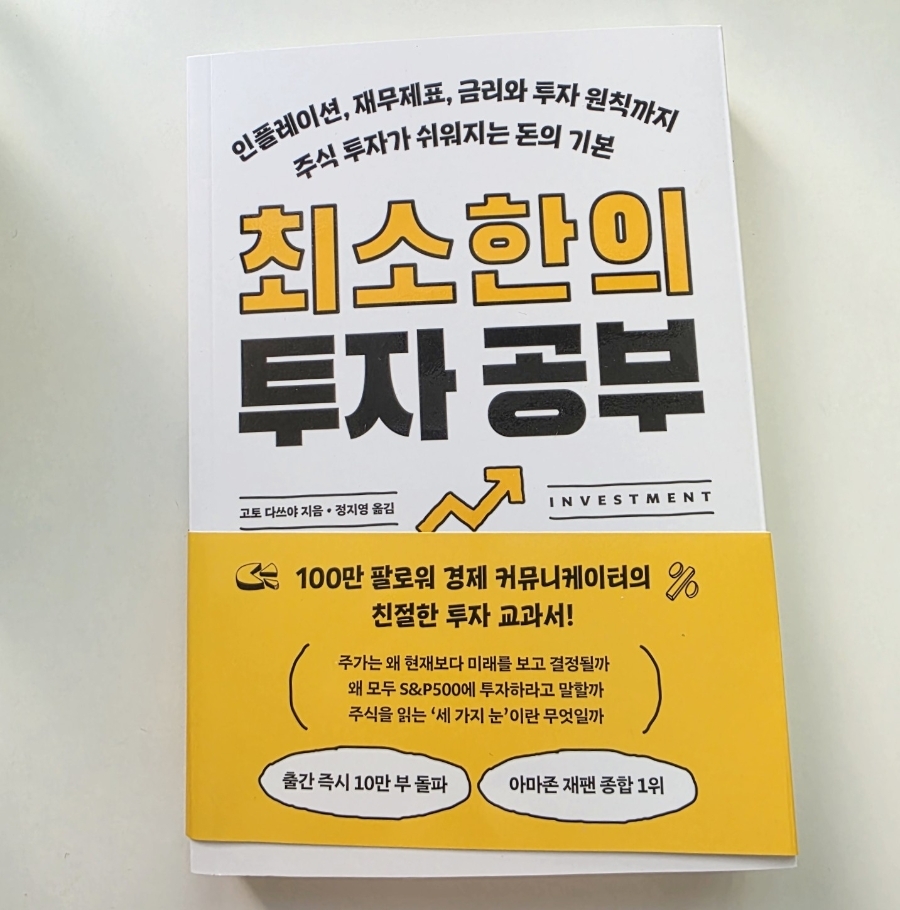 ‘업체로부터 도서를 제공받아 솔직하게 작성한 서평입니다.’ 제목: 최소한의 투자 공부 지은이: 고토 다쓰야 펴낸곳: (주)알에이치코리아 발행: 2025년 11월 25일 최소한의 투자 사고법 <최소한의 투자 공부>라는 제목을 처음 마주했을 때, 어딘가 모르게 안도감이 밀려왔습니다. '최소한'이라는 단어가 주는 무게감은 복잡하고 어려운 투자 시장 속에서 길을 잃은 많은 이들에게 분명 한 줄기 빛과 같을 것이라고 생각했기 때문입니다. 이 책은 단순히 단기적인 투기 기법이나 맹목적인 종목 추천에 급급한 여느 투자 서적들과는 궤를 달리합니다. 돈을 불리는 기술을 넘어, 세상을 폭넓게 이해하고 읽어내는 지혜로운 '투자 사고법'을 알려주는 데 초점을 맞추고 있지요. 경제라는 거대한 흐름 속에서 우리가 어떤 자세로 자산을 관리하고 성장시켜야 할지, 그 근본적인 원칙과 철학을 제시해 줄 것이라는 기대감이 가득했습니다. 불확실성으로 가득 찬 시대를 살아가는 우리에게 투자란 더 이상 선택이 아닌 필수인 만큼, 이 책이 제시하는 통찰력은 단순한 지식을 넘어 삶의 지혜를 전해줄 것이라는 확신을 가지게 합니다. '수익률'이라는 숫자 뒤에 가려진 '세상'이 책을 읽기 시작하기 전에 우리는 잠시 마음을 가다듬을 필요가 있습니다. '수익률'이라는 숫자 뒤에 가려진 '세상'을 제대로 바라보려는 열린 마음, 그리고 돈의 흐름을 이해하려는 지적 호기심을 가지고 책장을 넘기는 것이 무엇보다 중요합니다. 이 책의 저자인 고토 다쓰야는 100만 팔로워를 거느린 일본의 대표 경제 저널리스트답게 복잡하고 난해하게만 느껴지는 경제 용어를 친숙한 비유와 일상 속 실제 뉴스 사례를 통해 쉽고 명료하게 풀어내고 있습니다. 투자를 처음 시작하는 분들도 부담 없이 경제의 핵심 지식과 더불어 자신만의 견고한 투자 원칙을 세울 수 있도록 돕는 세 가지 사고법을 제시하며, 딱딱한 이론서가 아닌 우리 삶과 밀접한 이야기를 통해 투자에 대한 시야를 넓혀주고 있습니다. 자신만의 견고한 투자 원칙을 세울 수 있는 세 가지 사고법 첫째, 나무를 보지 말고 숲을 보라 개별 종목의 단기적 흐름에만 집중하기보다, 세계 경제의 큰 흐름과 산업 전반의 변화를 이해해야 한다는 것입니다. 넓은 시야로 세상을 바라볼 때 비로소 성장 잠재력이 높은 산업이나 기업을 발견할 수 있게 됩니다. 둘째, 원인과 결과를 연결하는 논리적 사고 주식 시장에서 발생하는 현상들을 단순히 우연이나 감으로 해석하기보다, 그 현상의 배경이 되는 원인과 논리적인 인과관계를 찾아내려는 노력입니다. 이를 통해 시장의 노이즈 속에서도 핵심 정보를 가려내고 합리적인 결정을 내릴 수 있게 됩니다. 셋째, 지금 보고 있는 것을 의심하는 비판적 사고 미디어에 쏟아지는 정보나 전문가의 의견을 무비판적으로 수용하기보다, 항상 '왜 그럴까?', '다른 관점은 없을까?'라는 질문을 던지며 스스로 판단하는 힘을 길러야 합니다. 자신만의 분석과 확신이 있을 때만이 흔들림 없는 투자를 이어갈 수 있게 되는 것입니다. 최소한의 투자 공부 체계적인 투자 지식 <최소한의 투자 공부>는 총 다섯 개의 부로 나뉘어 체계적인 투자 지식을 선하하고 있습니다1부 투자가 필수인 시대에 들어서다 투자가 선택이 아닌 필수가 된 시대적 배경과 인플레이션이 우리의 자산을 어떻게 잠식하는지 알려주며, 투자의 중요성을 강하게 일깨워 줍니다. 최소한의 투자 공부 30쪽 2부 기초부터 다시 생각하자 재무제표의 기본 개념과 기업 가치를 평가하는 핵심 지표들을 설명하며, 투자의 가장 기본적인 바탕을 튼튼하게 다질 수 있도록 돕습니다. 최소한의 투자 공부 91쪽 3부 주가는 무엇으로 움직이는가? 단순한 등락을 넘어 주가를 움직이는 다양한 요인들을 분석하고, 시장의 본질을 꿰뚫어 볼 수 있는 통찰력을 길러주며 섣부른 판단을 경계하게 합니다. 최소한의 투자 공부 139쪽 4부 중앙은행은 금융 시장의 심장 금리와 통화 정책이 투자 시장에 미치는 영향을 심도 있게 다루며, 거시 경제의 흐름을 읽는 안목을 키우는 데 집중하게 합니다. 최소한의 투자 공부 252쪽 5부 투자를 시작하자 앞에서 배운 지식을 바탕으로 실제 투자를 시작하는 현실적인 방법과 더불어 실패하지 않는 원칙들을 제시하며 독자들이 성공적인 투자로 나아갈 수 있는 길을 밝혀줍니다. 최소한의 투자 공부 339쪽 자신만의 투자 철학 정립 필요 이 책은 투자자들에게 '돈을 불리는 것을 넘어, 세상을 읽는 지혜로운 투자자가 되어야 한다'라고 강력하게 주장합니다. 단순히 단기 수익에 일희일비하기보다, 꾸준한 학습과 깊이 있는 사고를 통해 자신만의 투자 철학을 정립하는 것이 중요하다는 메시지를 던지는 것이죠. 성공적인 투자를 위해서는 유행에 휩쓸리지 않는 주체적인 판단력과 변화하는 경제 환경을 끊임없이 학습하려는 자세가 필수적입니다. 우리의 귀중한 자산을 지키고 성장시키기 위해서는 마치 공부하듯이 경제의 기본 원리를 이해하고 장기적인 관점에서 자신만의 투자 원칙을 세우는 데 노력을 기울여야 할 것입니다. 흔들림 없는 투자자로 성장 <최소한의 투자 공부>를 통해 
