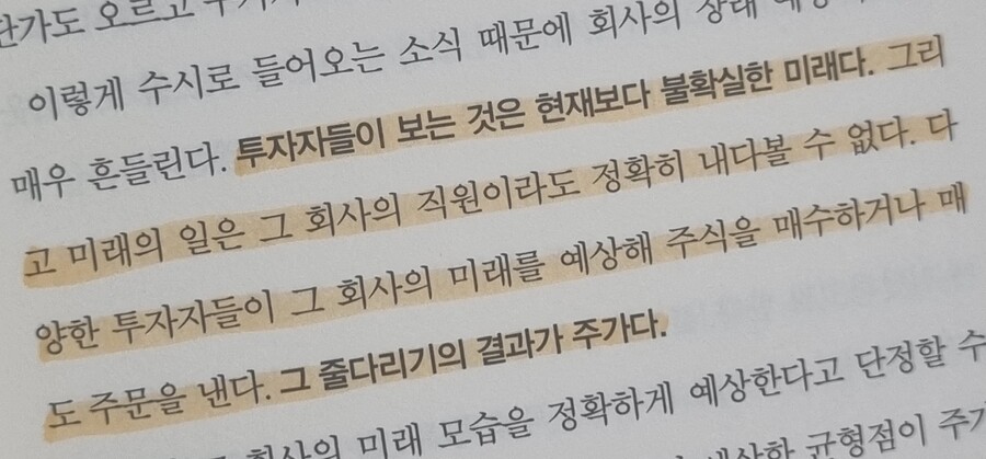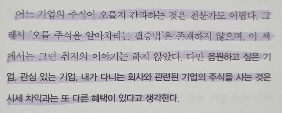 개인적으로 눈에 띄는 부분은 인적자원으로 지칭되는 직원은 재무상태표에 없으므로 간과될지 모르나 업무의 편의성을 제공하면서 회사를 성장시키는 일이 점점 더 중요해지는 세상에 인적자본 경영의 중요성을 설파하는 것이 이채롭다. 저자는 이외에도 기술력, 환경, 다양성처럼 시대 변화에 대응하는 능력도 재무제표에 나타나지 않는 자본과 자산이라고 강조한다. 투자를 시작하는 이들에게 이 책은 정말 중요한 계기가 될 것이라고 확신한다. 꼭 읽어보시기를 권하고 싶다.