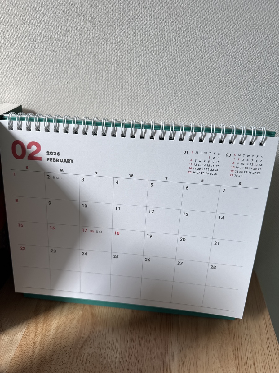 2년치라 긴 계획에 용이합니다. 앞뒤로 용도에 맞춰 디테일하게 사용할 수 있는 것도 좋습니다. 탁상용으로 쓰기에 사이즈도 적당하고 매일매일이 선으로 구분되어져 있는것도 깔끔해서 미음에 듭니다( 그러지 않은 탁상달력도 있기에).. |
