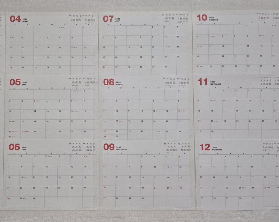 숫자와 메모할 수 있는 칸이 커서 일정 적어두기에 아주 좋아요. 디자인도 깔끔해서 맘에 듭니다. 종이 크기나 두께도 괜찮아요. 2년동안 사용할 수 있는 분량으로 되어있는데 12장만 뜯어서 1년 일정을 한눈에 보는 용으로 사용중입니다. 재구매의사 있어요. |
