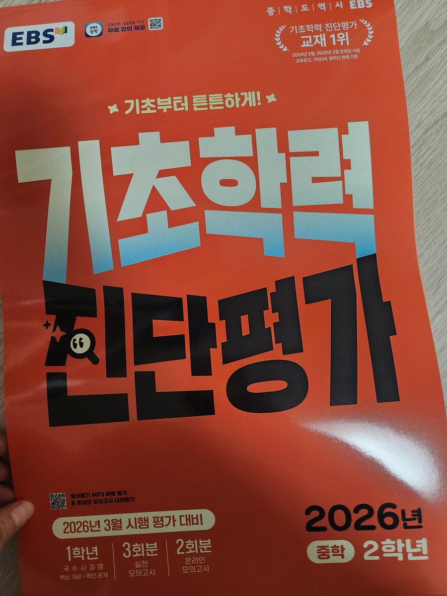 2026년 3월에 있을 시험을 대비하기 위해 구매했는데, 중학교 2학년 올라가기 전 1학년 과정을 전체적으로 복습하기에 정말 좋은 교재인 것 같습니다. 핵심 개념이 깔끔하게 정리되어 있을 뿐만 아니라 실전 모의고사와 온라인 모의고사까지 넉넉하게 구성되어 있어 아이가 실전 감각을 익히기에 매우 효과적입니다. 난이도 또한 기초부터 차근차근 점검할 수 있는 수준이라 부담 없이 공부하기 좋고, 무엇보다 EBS 강의와 연계하여 활용할 수 있다는 점이 큰 장점이라 생각합니다. 새 학기 시작 전 학습 상태를 확인하고 기본기를 탄탄하게 다지고 싶은 분들에게 적극 추천해 드리고 싶습니다. |