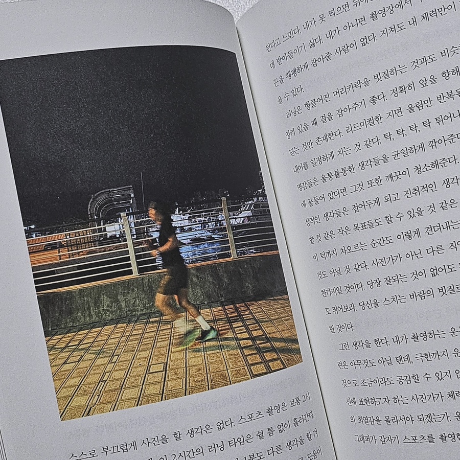 사진가로서 그는 세계와 도시와 스포츠맨과 무용가를 찍어오며 “자기 나름의 세상과 사람, 삶에 대한 감상과 의미”를 깨달아온 것 같다. 특히 피사체와 효과, 사진 사이에서 그가 느낀 감상들은 “하나의 직업과 예술에서 갖는 감상들이 사람에게 길이 되고 의미를 찾게 하기도 한다”는 걸 깨닫게 한다. 이건 비단 예술만이 아니라 요리건 운동이건 격투기건 카레이싱이건을 막론하고 자신의 길에서 누구나가 감상이 있을 수 있다. 누구든 다른 이의 삶에서 배움을 얻거나 그의 감상에서 감동을 느낄 수 있기에 에세이를 읽는 이들이 있는 것일 테고 말이다. 저자가 사진예술을 통해 느끼고 깨우치고 성장해 온 과정을 담담히 적어 내려간 이 책은 “예술과 생계의 사이에서도 성찰하고 성장하는 과정은 더딜 수 없는 거구나” 느끼게 했다.
