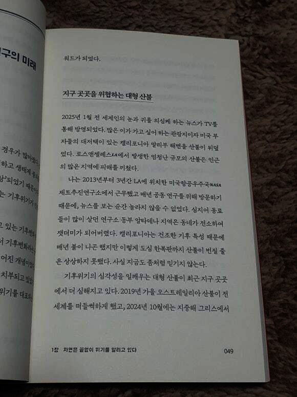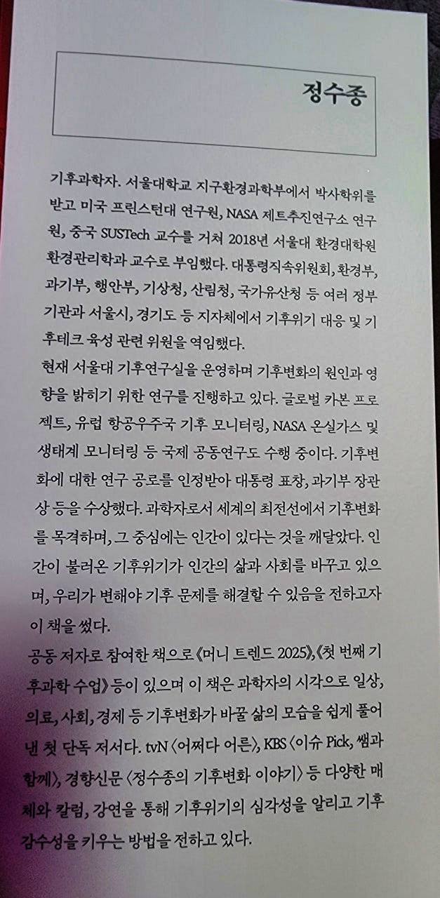 이 책의 장점은 쉽게 읽힌다는 점이다. 독자에게 일방적으로 지식을 전달하기보다는, 학생과 편안하게 대화를 나누듯 질문을 던지고 함께 생각해 보자고 제안하는 느낌이다. 덕분에 복잡한 기후과학의 개념도 부담 없이 이해할 수 있으며, 동시에 우리가 직면한 기후위기의 무게를 결코 가볍게 느끼지 않도록 해준다.