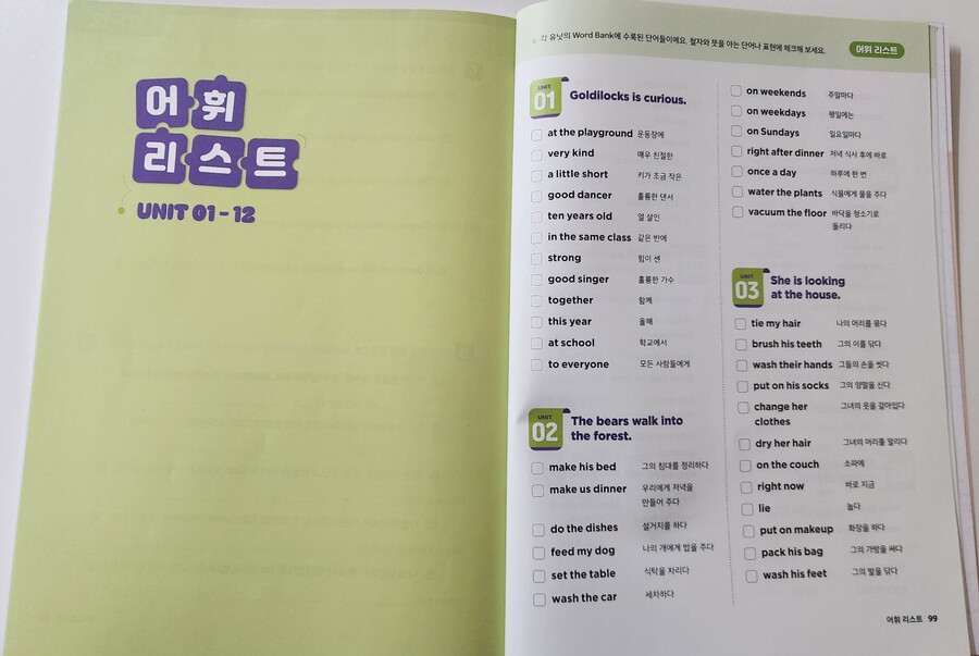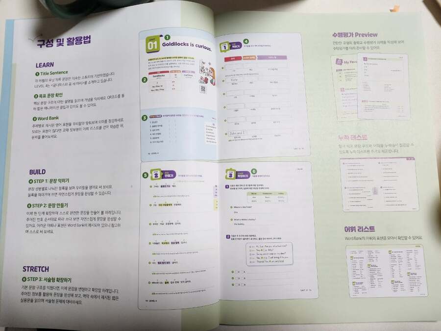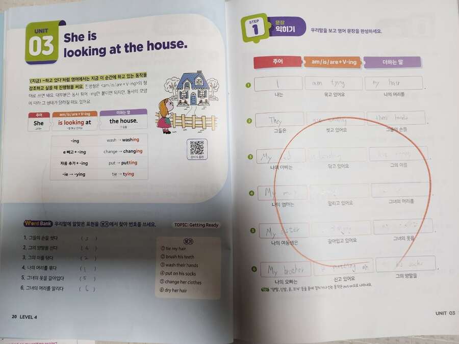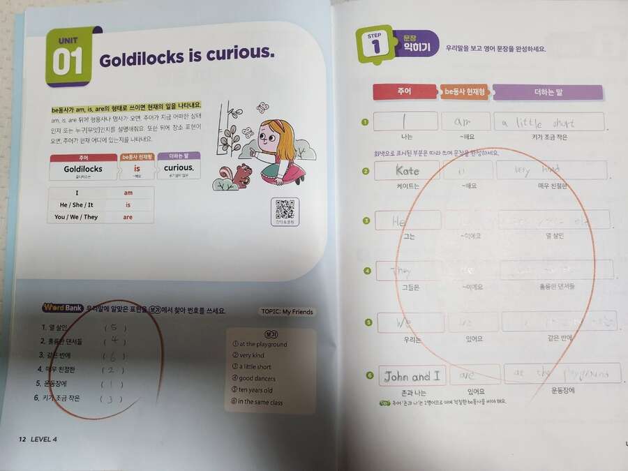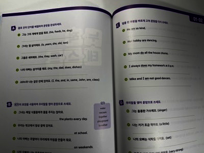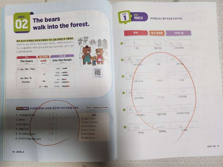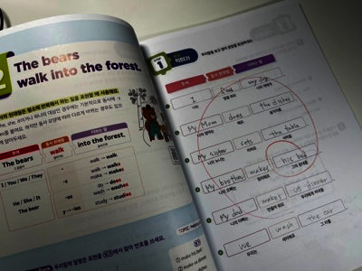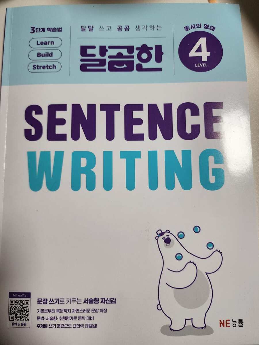 출판사로부터 도서를 제공받아 아이와 함께 읽고 느낀 점을 바탕으로 작성한 서평입니다. 📘 | 달콤한 문장 쓰기, 체계적인 3단계 학습 달곰한 Sentence Writing –『4. 동사의 형태』 영어 리딩은 어느 정도 자신 있어도, 라이팅은 상대적으로 부족해 보여 적절한 교재를 찾던 중 달곰 시리즈의 Sentence Writing을 발견하게 되었습니다. 예비 초등 4학년 아이가 리딩 중심 영어 학원을 다니고 있어, 라이팅은 아직 부족한 편이었는데, 체계적으로 연습할 수 있는 이 교재를 활용하면서 문장 쓰기 자신감이 많이 생겼습니다. 1단계- 영상과 함께 핵심 문장 구조와 설명을 접하며 개념을 쉽게 익힐 수 있습니다. ‘골디락스와 곰 세 마리’ 같은 친숙한 이야기와 함께 배우기 때문에, 아이가 흥미를 느끼면서 핵심 문장을 배우는 걸 특히 좋아했어요. 제공되는 QR코드를 스캔하면 영상과 음원이 나와, 아이가 문장 구조와 발음을 자연스럽게 따라 할 수 있어요. 모르는 표현이나 단어가 많다면, 교재 뒷부분에 있는 어휘 리스트를 먼저 학습하고 문제를 풀어보는 것이 효과적입니다. 그러면 문장을 완성하는 과정이 훨씬 수월해집니다. 2단계- 성분별로 나누어진 블록을 따라가며 문장을 완성하는 활동이 매우 흥미로웠습니다. 주어진 번호 순서대로 문장을 따라 써 보면서, 문장의 구조와 어휘를 동시에 익힐 수 있습니다. 이렇게 단계별로 연습하다 보면, 직접 영어로 문장을 써보고 아이가 스스로 생각하며 문장을 만드는 즐거움을 느끼게 해주었어요. 3단계- 서술형 확장 단계로, 배운 문장을 변형하고 확장하며 서술형 문제 대비까지 가능해, 아이가 “내가 문장을 이렇게 만들 수 있구나” 하는 성취감을 느낄 수 있었어요. 마지막으로 누적 테스트를 통해 앞서 배운 내용을 다시 점검할 수 있습니다. 문장 구조와 어휘를 확인하며 반복 학습이 가능하기 때문에, 가정에서도 충분히 연습할 수 있습니다. 단계 학습법으로 이루어진 이 교재는, 아이가 스스로 학습하는 능력을 기르는 데에도 큰 도움이 됩니다. ⭐ 추천드립니다