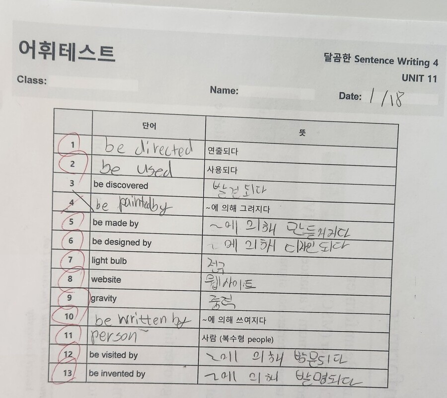 초등 6학년 아이와 함께 달곰한 'Sentence Writing 4권'으로 수동태 파트를 집중 학습해 보았어요. 중학교 입학을 앞두고 서술형 평가가 걱정되었는데, 이 교재는 문법의 뼈대를 활용해 직접 써보는 방식이라 아이가 훨씬 쉽게 이해하고 영작해볼 수 있어요.