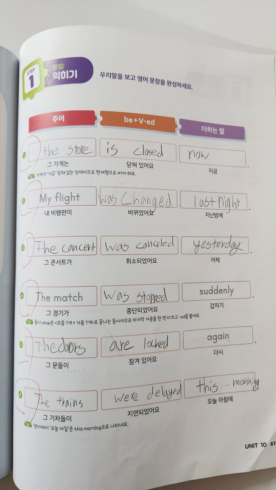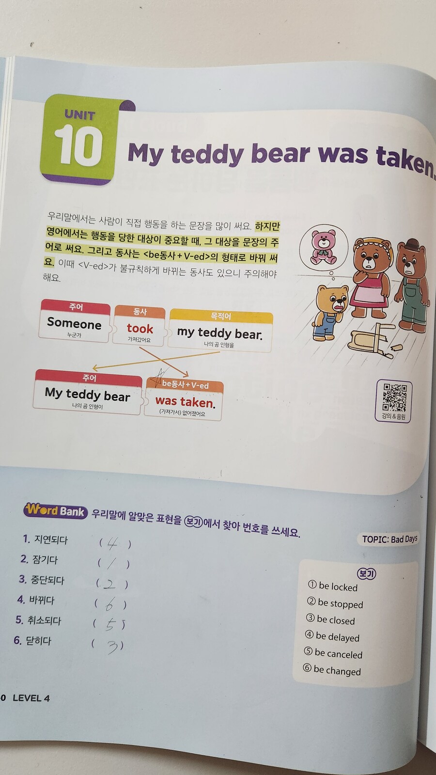 수동태 기본 공식(be동사+과거분사)을 외우고, 이를 활용해 쉬운 문장부터 단계별로 써볼 수 있어 효율적이에요. 자연스러운 확장 딱딱한 문법 설명보다 상황에 맞는 문장 쓰기에 집중하니 아이가 수동태의 쓰임새를 이해하기 쉬워해요.