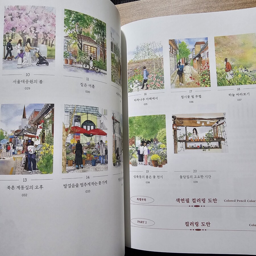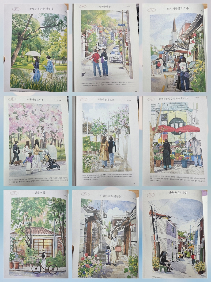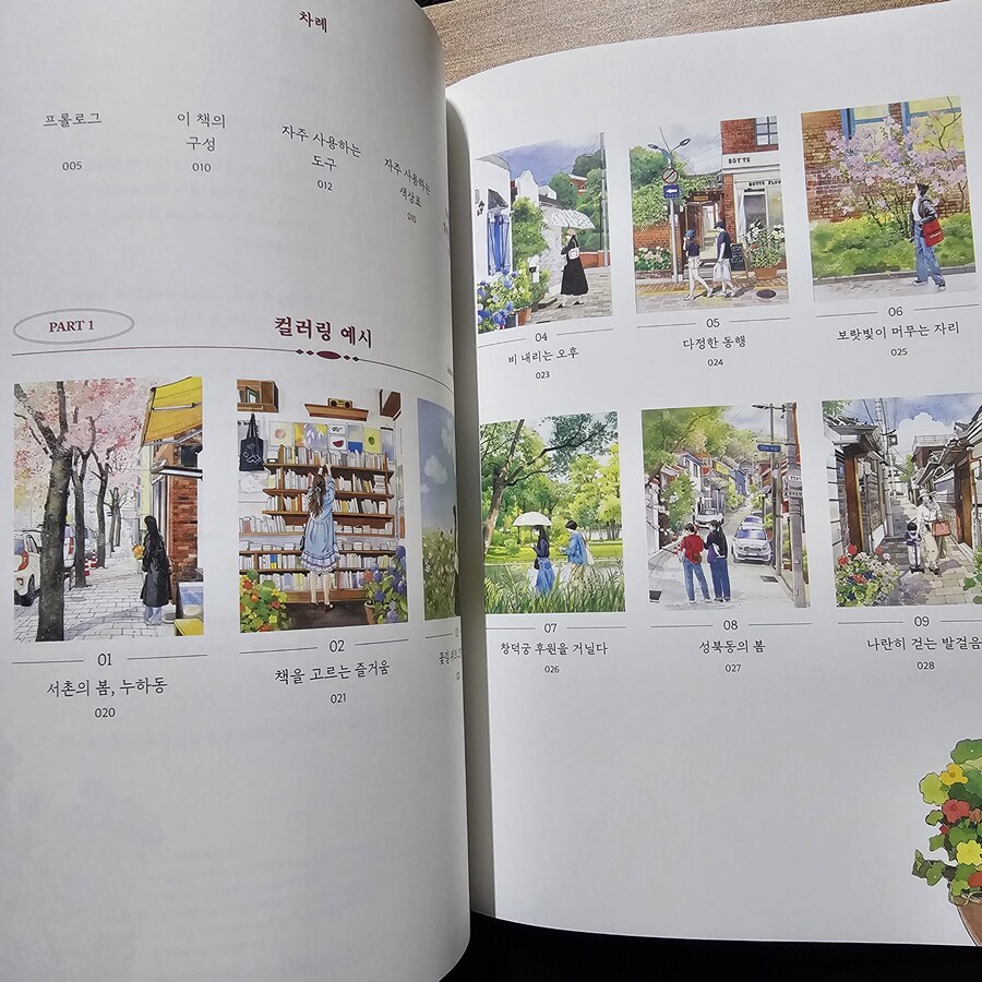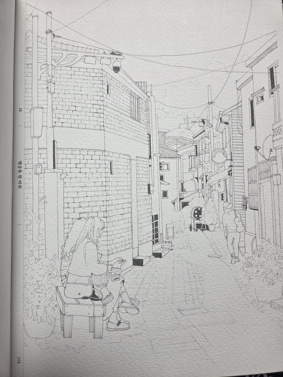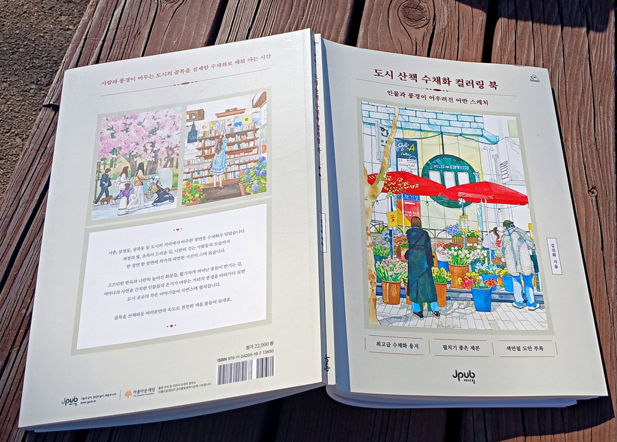 인물과 풍경을 정교한 빛깔로 기록한 어반 스케치 도시 산책 수채화 컬러링 북