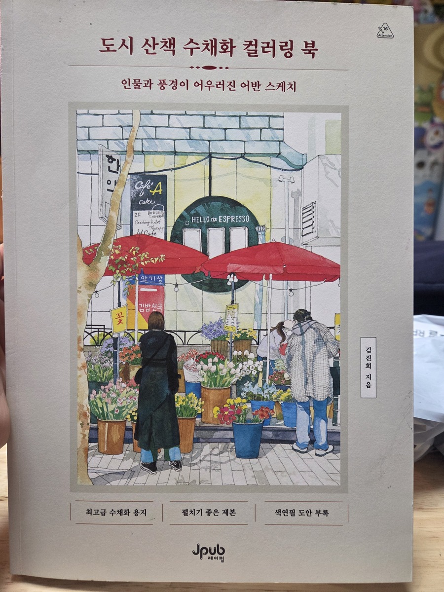 *도서 제공* 도시 산책 수채화 컬러링 북 김진희 지음 ㅣ 제이펍 우리 집에는 컬러링북이 열 권 가까이 있어요. 아이와 함께 컬러링하는 시간을 좋아해서 새로운 책이 나오면 자연스럽게 관심이 가는 편입니다. 비슷한 구성의 컬러링북을 많이 접해왔지만, 이 책은 그동안 해왔던 색연필 위주의 컬러링북과는 달리 수채화 컬러링 북이라는 점이 눈에 띄었어요. 수채화 컬러링은 처음이라 어떤 분위기로 완성될지 궁금했고, 시작하기 전부터 기대가 컸습니다. 기존에 하던 컬러링북은 꽃이나 패턴 위주이거나, 배경만 크게 그려진 구성이 많았어요. 색을 칠하는 재미는 있지만 완성하고 나면 어딘가 비슷비슷한 느낌이 들 때도 있었죠. 그런데 이 책은 도시의 골목길, 카페, 창가, 길 위의 사람들처럼 일상적인 장면이 담겨 있어요. 특히 인물과 풍경이 자연스럽게 어우러져 있어서 한 장 한 장이 하나의 그림처럼 느껴집니다. 색을 칠하다 보면 단순히 빈 공간을 채운다는 느낌보다, 한 장면의 분위기를 만들어 간다는 기분이 들어요. 어떤 그림은 따뜻한 낮 풍경으로 표현해 보고 싶어지고, 어떤 장면은 노을 지는 저녁처럼 차분하게 완성해 보고 싶어집니다. 색 선택에 따라 분위기가 확 달라져서 한 페이지를 여러 번 다시 해보고 싶은 생각도 들었고, 계절에 따라 다른 색감으로 다시 색칠해 보고 싶다는 생각도 들었어요. 그동안 아이와 여러 컬러링북을 해보면서 느낀 건, 너무 단순하면 금방 흥미가 떨어지고, 반대로 선이 지나치게 복잡하면 시작하기도 전에 부담이 된다는 점이었어요. 그런데 이 책은 디테일이 적당해서 어렵지 않으면서도 완성했을 때 결과물이 꽤 만족스럽게 나옵니다. 수채화 느낌을 살릴 수 있는 선이라 색연필이나 수채 물감 모두 잘 어울릴 것 같다는 생각이 들었어요. 실제로 색을 여러 번 겹치지 않아도 부 드러운 분위기가 표현돼서 초보자도 부담 없이 시도할 수 있습니다. 특히 좋았던 점은 완성 후의 만족감이에요. 예전 컬러링북은 다 색칠하고 나면 ‘열심히 칠했다’는 느낌이 더 컸다면, 이 책은 ‘예쁜 그림을 하나 완성했다’는 기분이 들었어요. 액자에 넣어 두고 싶다는 생각이 들 정도로 장면 자체가 감성적으로 구성되어 있습니다. 아이와 함께 색을 고르며 이 장면은 밝고 화사하게 해볼지, 조금 차분한 색감으로 표현해 볼지 이야기하는 시간도 참 좋았어요. 색을 채우는 동안 자연스럽게 대화가 이어지고, 서로 다른 색을 선택하는 이유를 말해 보기도 했습니다. 단순히 시간을 보내는 활동이 아니라 함께 취미를 공유하는 느낌이 들었어요. 도시 풍경이라는 소재 덕분에 어른이 하기에도 전혀 유치하지 않고, 그렇다고 해서 지나치게 어렵지도 않습니다. 차분하게 색을 채우며 힐링하고 싶은 분들께 잘 어울리는 컬러링북이에요. 여러 권을 경험해 본 집에서도 새롭게 느껴졌던 책이라 더욱 기억에 남습니다. 그리고, 계절에 따라 다른 색감으로 다시 색칠해 보고 싶다는 생각도 들어서 컬러링을 즐기시는 분들께 추천드립니다. 📌 출판사로부터 도서를 제공받아 작성한 주관적인 후기입니다. #도시산책수채화컬러링북 #컬러링북추천 #수채화 #제이펍 #리뷰의숲 |