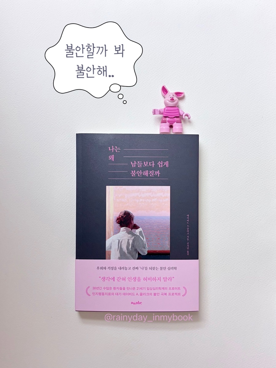 [책 속의 문장들] 누구든 불안을 느끼면서도 생산성 있게 일하고, 가족과 친구들과 자연스럽게 어울리며, 일상생활을 유지해 나갈 수 있다. 67p 하지만 문제는 삶을 항상 계획하고 예측할 수 없다는 점이다. 예상치 못한 일이 언제들 일어날 수 있으며 미래는 항상 불확실하다. 144p 천 명이 괜찮다고 말해줘도 실제로 괜찮아질 확률이 높아지는 것은 아니니까. 160p 아무리 후회해도 과거의 말이나 행동에 대해 할 수 있는 일은 거의 없다. 이미 뱉은 말을 되돌릴 수 없고, 사과는 상대방이 불쾌감이나 난처함을 느낀 경우에만 의미가 있다. 276p @awakebooks.kr 출판사에서 도서를 지원받아 주관적으로 작성하였습니다 #나는왜남들보다쉽게불안해질까 #데이비드A클라크 #어웨이크북스 #불안 #무기력 #심리도서 #자기계발서 @rainyday_inmybook |