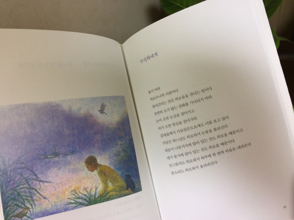 시보다는 소설을 선호하는 편이라 시를 잘 읽지 않는 편이다. 그러니 시집도 잘 사지 않는다. 몇 번 산 적이 있는데, 손이 잘 가지 않았다. 그래서 시집은 이제 그만 사야지... 했는데, 또 사버렸다. 정호승 시인의 '수선화에게'가 너무 좋기도 했지만, 시와 함께 있는 따뜻한 그림들이 너무 마음에 들어 구입했다. 수묵화 같기도, 수채화 같기도 한 그림들과 사람와 세상에 대한 시인의 따뜻한 마음이 느껴지는 시들이 너무 좋다. |
