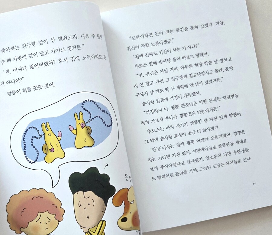‘짬뽕 도장’ 두 번째 이야기. 다시 만난 친구 ‘너’와 함께 살게 된 짬뽕 관장과 첫 번째 수련생들 못지않게 개성 강한 새 친구들의 이야기가 유쾌하‘개’ 펼쳐진다. 짜장, 솜사탕, 소시지, 꽈배기 등 새 친구들 각자의 사연에 맞게 수련생들에게 '짬뽕권'을 가르쳐 준다. 다양한 캐릭터들은 빠르게가 아닌 "나답게" 성장하는 법을 배우며 서로의 속도를 존중하고 다름을 받아들이며 관계를 소중히 여길줄 알게된거 같다. 아이도 혼자 노는것도 재미있고 즐거운 일이 많지만, 함께라 할수 있는, 더 즐거운 일들이 많다는걸 알고 친구와의 관계를 소중히 여길 줄 아는 아이로 자라길 바래보아요♡♡ @on_mom85 #함께하시개짬뽕도장 #책읽는곰 #독서기록 #북스타그램 #초등도서추천