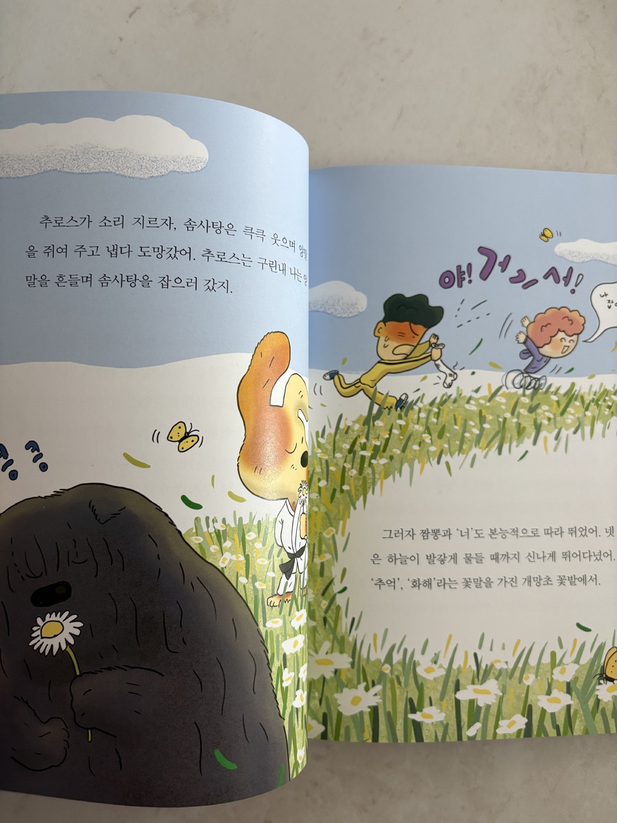 📚 함께 하시개 짬뽕도장 📖@bearbooks_publishers ✏️공수경 🎨신민재 두번째이야기를 미리 볼 수 있는 기회를 받았어요!!! 이번 이야기에는 짬뽕과 '너'의 우정과 솜사탕, 소시지, 마카롱, 추로스 처럼 이름을 붙여 사랑스럽개🐶 나타나는 친구들! 자기만의 고민이나 문제를 품고 짬뽕도장을 찾아오면 무엇이든 다 가르쳐주니 짬뽕도장에 찾아가고 싶겠죠??!! 짬뽕은 아이들 각자의 속도를 존중하며 스스로 깨치도록 도와주는 따뜻한 관장님이랍니다 그리고 떠돌이 생활 끝에 짬뽕과 함께 살게 된 검은 개 ‘너’의 이야기는 가슴을 찡하게 하면서도 이름을 함께 찾아주는 장면에서는 진심으로 뭉클…🥺 짜장이라는 이름을 찾아주는 장면을 보면서 아이는 '너' 라는 이름으로 살아왔던 검은개가 이제 이름을 가지게 되어서 좋아 라고 말해주더라구요 함께하면 더 즐겁고, 그래, 네가 있어서 나도 좋아라는 문장이 자꾸 떠오르는 그런 따뜻한 책이에요. 💛 @bearbooks_publishers #함께하시개짬뽕도장 #초등책추천 #책읽는곰 #서평단 초등추천도서 |