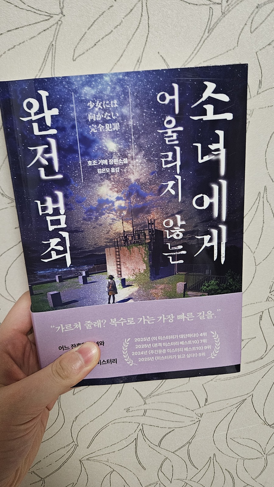 이 책은 호조 기에라는 일본 작가의 장편소설이다. 제목부터가 심상치 않게 느껴졌다. 원래 소녀와 범죄는 어울리지 않는 단어이기는 하지만 더욱 강조된 제목이 가장 눈에 들어왔다. 거기에 복수하는 소녀와 유령의 미스터리 스릴러 소설이라는 점에서 관심이 생겼다. 그동안 이 출판사의 신간들을 종종 읽으면서 꽤 괜찮은 작품들을 만났기 때문에 이번 신작도 크게 부담감 없이 선택해 읽게 되었다. 소설의 주인공은 오토하라는 인물이다. 빈집에서 부모님께서 기이한 모습으로 살해당했고, 형사인 이모와 함께 살아가고 있다. 부모님께서 마지막으로 만나려고 했던 완전 범죄 청부사인 구로하가 추락해 유령이 되었는데 유령을 보는 능력이 있던 오토하는 구로하를 찾아가 부모님을 죽인 범인을 함께 찾자고 제안한다. 소설의 전체적인 이야기는 부모님과 구로하를 죽인 범인, 그리고 오토하와 구로하의 공조를 담고 있다. 전반적으로 술술 읽혀졌던 작품이었다. 초반에 500 페이지가 넘는 작품이어서 조금 당황스럽기는 했지만 그래도 초반에 몰입하게 만드는 스토리여서 한 번의 흐름에 완독이 가능했다. 그동안 일본 장르 소설을 많이 읽는 독자들에게는 너무나 익숙하게 느껴질 수 있는 분위기를 가진 소설이라는 생각이 들었다. 대략 네 시간 정도 소요가 된 듯하다. 아무 생각없이 가볍게 읽기에 좋았다. 개인적으로 오토하라는 인물이 가장 눈에 들어왔다. 소설에서 오토하는 초등학교 6학년의 여자아이로 등장한다. 그런데 하는 행동이나 구사하는 말들이 약간 어른스럽다는 느낌을 받았다. 보통 주변에서 만날 수 있는 학생들과는 결이 많이 다르다. 형사인 이모와 아무렇지 않게 범죄를 추리하고, 무례할 정도로 구로하를 가볍게 대하기도 한다. 그 지점에서 현실감이 떨어지는 것처럼 느껴졌다. 거기에 일본 소설에서 느껴지는 특유의 분위기가 조금 인상적으로 남았다. 마치 어렸을 때 일본 만화 영화를 보는 것 같은 착각이 들었다. 이 부분이 약간 호불호가 갈릴 요소가 아닐까 싶다. 적어도 나에게는 호와 불호 그 딱 중간 선상에 있었고, 의식하지 않는다면 재미있게 읽을 수 있을 듯하다. 특히, 이러한 분위기는 오토하로부터 가장 크게 느껴지는 부분이어서 주인공이 가장 눈에 잘 들어와던 것 같다. 독서인들 사이에서 일종의 밸런스 게임으로 '70 % 남았는데 결말이 드러나기 vs 95 % 남았는데 아직 결말이 드러나지 않기' 이런 류의 내용을 가진 SNS 그림이 있다. 그동안 이렇게 극단적인 선택을 할 일이 없었는데 속도감 있는 전개로 70~80 % 사이에 뭔가 흐름이 마무리로 흘러가서 당황스러웠던 작품이었다. 그러다 다시 갑자기 스토리가 전환되었는데 결말에 이르러 장르 소설의 내공을 다시금 생각하게 되었다. |