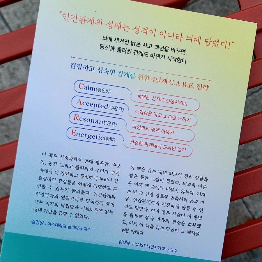 그런 관점에서 『인간관계의 뇌과학』은 발표를 넘어 인간관계 전반을 다시 보게 만든 책이었습니다. 이 책은 인간관계의 문제를 성격이나 태도가 아니라 뇌와 신경계의 관점에서 설명하고, 이를 C.A.R.E.라는 네 가지 요소로 정리합니다. Calm, Accepted, Resonant, Energetic. 관계 속에서 내가 편안한지, 받아들여지고 있는지, 감정적으로 연결되어 있는지, 에너지를 얻고 있는지를 점검하게 만듭니다. 개인적으로는 얼마 전 아내와 대화를 나누며 ‘서운하다’라는 감정을 이제서야 더 정확하게 이해하게 됐다는 사실이 인상 깊게 겹쳐졌습니다. (신기하게도 저는 39년 살면서 ‘서운해’라는 말을 거의 안 하고 살았더라고요.) 좋다 싫다 같은 거친 감정이 아니라, 더 세분화된 감정 언어로 소통하니 관계가 분명히 달라지더군요. 뇌는 이미 그 미묘한 차이를 알고 있었던 거죠. 뇌를 이해하면 인간관계도, 삶도 한 단계 나아질 수 있다는 걸 이 책이 잘 보여줍니다. C.A.R.E. 네 가지를 한 번쯤 점검해볼 만합니다. #인간관계의뇌과학 #자기계발 #서평 #누구나쉽게배우는3단계발표공식 #책추천 |