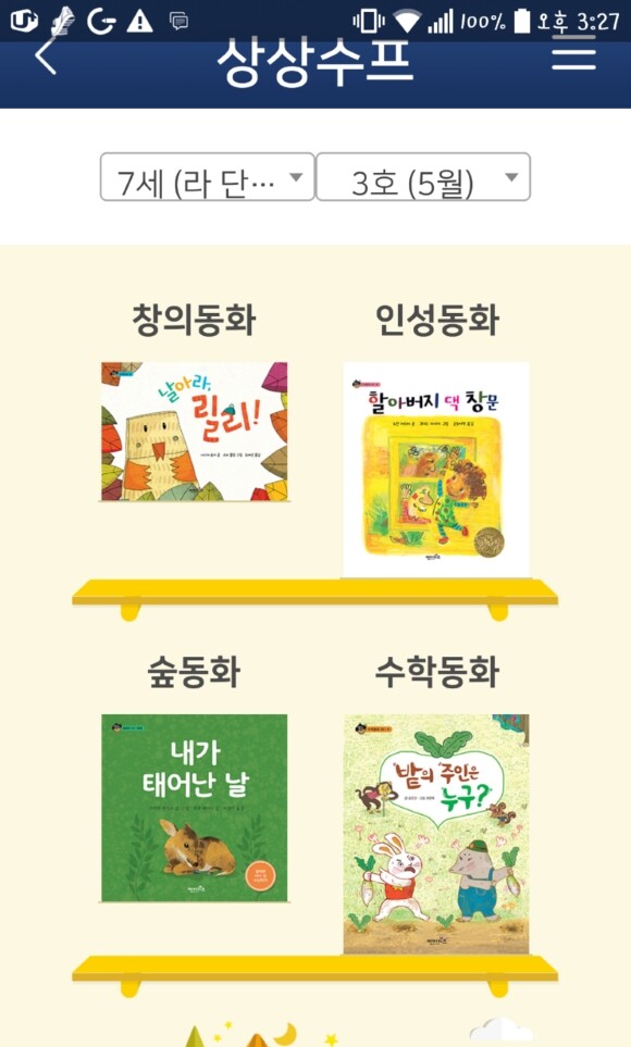 동화목록을 보면 가,나,다,라 전단계모두를 만나볼수있기에 형제,자매가 있다면 더욱 유익하게 상상수프 앱을 활용할수있을 것 같아요
