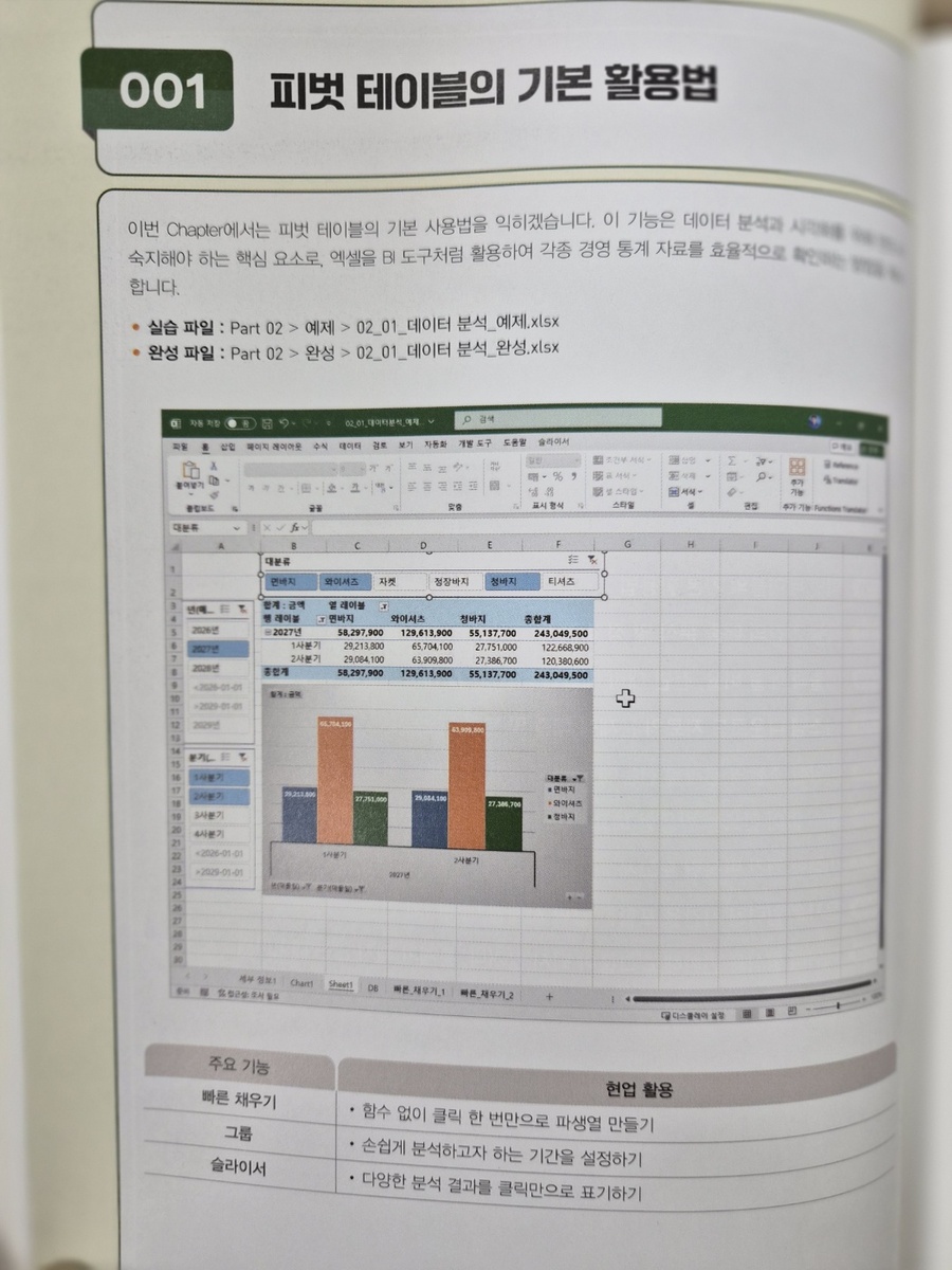 이 파트는 피벗 테이블을 중심으로 데이터를 재구성하며, 복잡한 수식 없이도 데이터의 구조와 흐름을 파악하도록 설계되어 있습니다. 그럼으로써 분석 작업의 진입 장벽을 낮추어주고, 데이터 분석의 출발점을 '계산'이 아닌 '구조 이해'로 바꾸어줍니다. 이 챕터의 핵심은 데이터를 어떻게 나누고 묶을 것인가에 대한 기준을 세우는 데 있습니다. 피벗 테이블은 동일한 데이터를 다양한 관점으로 재배치할 수 있게 하며, 이를 통해 데이터의 분포와 관계를 빠르게 확인할 수 있습니다. 특히 수식에 의존하는 방식은 오류 발생 시 원인을 추적하기 어렵지만, 마우스 기반 분석은 결과를 즉시 확인하고 구조를 수정할 수 있어 분석 과정의 안정성을 높입니다. 따라서 이 챕터는 데이터 분석을 시작하기 위한 최소한의 방식을 정립하는 단계입니다. 특히 엑셀 사용 경험이 적은 독자일수록 이 파트를 먼저 읽는 것이 합리적입니다. 데이터 분석의 본질은 데이터 구조를 해석하는 능력에 있기 때문입니다. 행과 열이 무엇을 의미하는지, 어떤 기준으로 비교되는지를 이해하지 못하면 이후 기능을 적용하더라도 결과를 해석할 수 없습니다. 따라서 초급자는 기능 학습보다 데이터 흐름을 시각적으로 이해하는 과정에 집중해야 합니다.