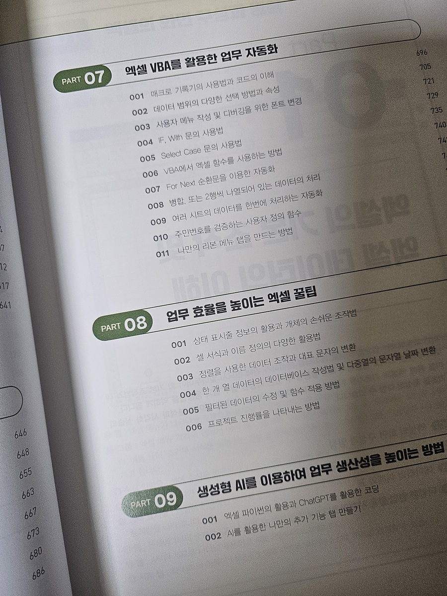 매일 업무에서 엑셀을 끼고 사는 직장인이지만, 늘 쓰던 기능만 반복하다 보니 실무에서 조금만 복잡한 데이터 분석이 필요해도 막막함을 느끼곤 했던 차에 [엑셀로 시작하는 데이터 분식과 업무 자동화] 책을 알게되었습니다. 가장 먼저 852쪽이라는 두께에 놀랐는데요. 하지만 내용을 펼쳐보니 왜 이렇게 두꺼운지 바로 이해가 되더라고요! 기초 함수부터 피벗 테이블을 활용한 데이터 분석, 그리고 직장인의 로망인 업무 자동화(VBA/매크로)까지 엑셀의 모든 핵심 포인트를 한권에 담은 책입니다.