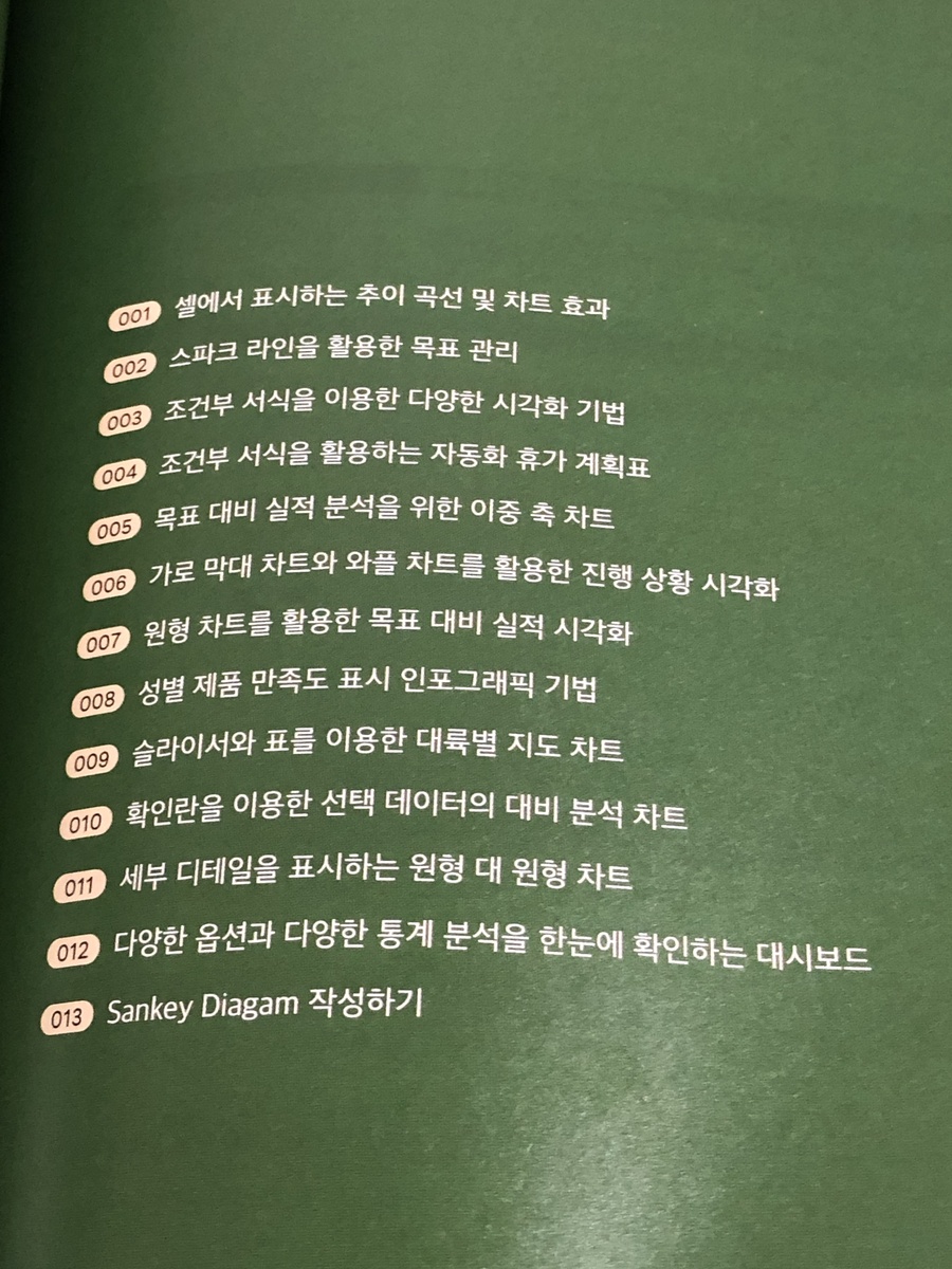 또한 파워쿼리를 활용한 데이터 분석을 통한 네이버 주식 자료의 크롤링 및 시각화를 할 수 있게 해준다. 다양한 차트를 이용해서 목표 대비 실적 분석 차트, 인포그래픽으로 표시하는 데이터, 생키 다이어그램 등을 배우는 방법들을 상세하게 알려주고 있어서 많은 도움이 된다.