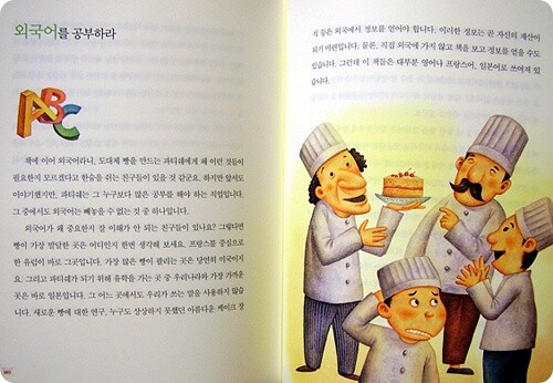그래서 이 책은 '파티쉐가 들려주는 파티쉐 이야기'로 이름붙일 수 있겠는데, 지구상 최초의 파티쉐가 누구인지, 파티쉐의 하루는 어떠한지, 또 국내외 파티쉐 학교와 견학할 만한 곳, 여러가지 빵 만드는 법까지, 장차 파티쉐가 되기를 꿈꾸는 어린이 뿐만 아니라 나와 같은 평범한 사람들도 흥미롭게 읽을 만한 내용이 꽤 실하다. 특히 <4장 특별한 멘토링>에서 저자가 들려주는 이야기는 꼭 파티쉐를 꿈꾸는 사람이 아니어도 누구든, 어느 분야를 선택하든 귀담아 들을 만한 것으로, 어린이 독자가 자기의 꿈을 제대로 구울 수 있도록 도와주고 싶었다는 저자의 바람이 녹아있다.