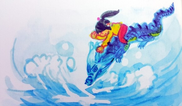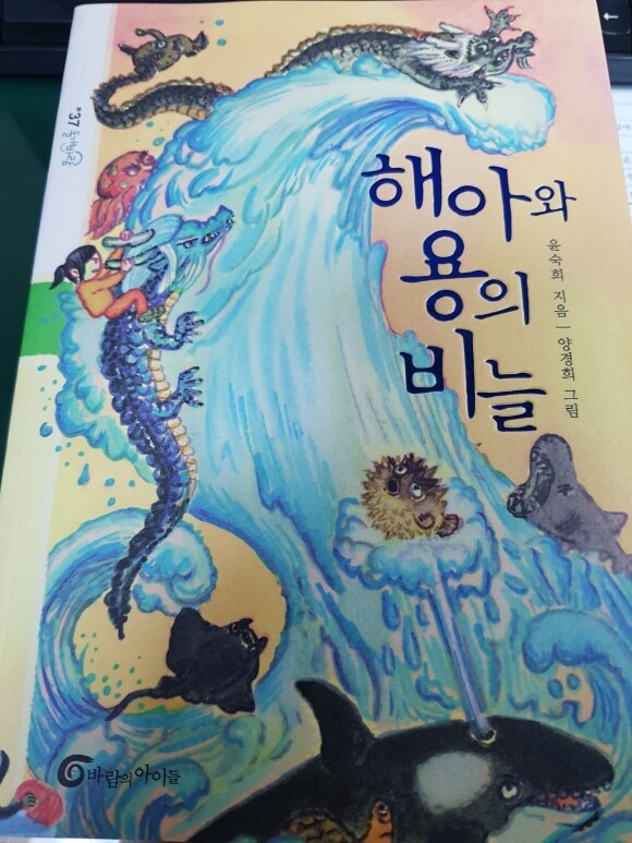 이 책은 우리의 이야기에 자주 등장하는 용에 대한 이야기다. 제주도에 사는 주인공 해아의 엄마는 해녀다. “휘이이! 휘이잇!‘ 엄마의 숨비 소리는 물질한 지 1년 밖에 되지 않았지만 먼 바다까지 나가 물질할 만큼 실력이 좋다. 오늘도 먼 바다에 나간 엄마를 기다리는 해아는 갑자기 큰 너울이 몰려와 엄마가 쓸려가는 모습을 보게 된다. 외할머니는 엄마는 잘 있다면 파란색 비늘을 해이에게 건넨다. 희망을 버리지 말라는 의미일까? 마을사람들은 해녀들을 위해 바다용왕에게 제를 올리며 사라진 해녀들이 돌아오길 기원한다. 용왕제가 열리던 날, 구경하던 사람들의 틈에서 푸른 옷을 입고 남자아이를 발견하게 된다. 바다처럼 파란 눈의 파란 머리카락을 가진 아이다. 할머니가 주신 파란색 비늘을 가진 아이는 용왕이 없다는 해이의 말에 용왕은 있다고 강하게 말하고 해이는 그 아이를 따라 바다 속으로 들어간다. 이 파란 눈의 아이를 따라 깊은 곳으로 들어가게 되고 신기한 보석과 산호들로 이루어진 표현할 수 없이 아름다운 용궁에 도착한다. 이 파란 눈의 아이는 용왕의 아들인 미르였다. 용궁에서는 대신들이 잡혀가고 용왕님이 배신한 인어들에 의해 병을 앓게 된다. 흑룡이 인어들을 매수하고 대신들을 잡아간 것이다. 해녀를 잡아간 것도 흑룡이다. 결국 미르는 아버지를 구하고 바다를 구하기 위해 흑룡과 맞선다. 극진히 용왕님을 간호하던 해이는 용왕님이 알려주는 천랑성을 찾아 미르에게 가져다준다. 가져가는 동안 만나는 인어들을 따돌리며 다른 물고기의 도움으로 미르에게 전해주고 결국 해녀 천명을 잡아 하늘 문을 열어 하늘로 올라가려는 흑룡을 무찌르게 된다. 이 책은 상상력이 가득 담겼다. 외할머니가 신비한 비늘을 가지고 있는 점, 해이가 인간으로서 바다 속까지 갈 수 있다는 점, 용왕님과 흑룡 등 신화나 이야기 속에 나오는 소재들이 가득하다. 모험 이야기답게 용궁이라는 상상의 환상적인 배경과 흑룡이라는 악당, 그리고 배신하는 인어 등을 통해 이야기를 이끌어 나간다. 그만큼 상상이 가득 담긴 것이다. 아이들이지만 정의를 위해 용기를 내고 꿈을 찾아 도전하는 해이와 미르라는 인물을 통해 아 이들에게 용기를 주고 희망을 준다. 사랑하는 엄마를 찾기 위해 무서움과 두려움을 이겨나는 용기, 어려움을 겪는 바다세상을 구하기 위해 어려움도 이겨내는 주변 물고기를 설득하며 임무를 완수하려 노력하는 책임감. 아이들이 이 책을 읽으면서 자연스레 배우게 될 것이다.