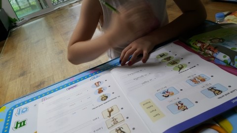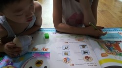 누나공부하는데 둘째도 같이 큰아이에게 너~놀고싶어하면 동생시킬꺼야~~~ 실은 옆에서 숫자공부하고있었거든요 그랬더니. 둘짼 하고싶어서 옆으로 옆으로 누난 안뺏길려고 큰소리로