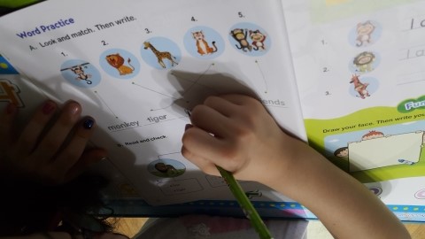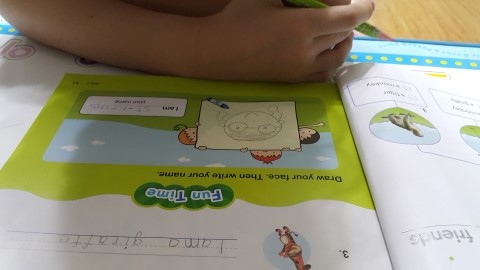 바로 연결해서 워크북을 풀렸어요 따로 하자 할필요없이 그냥 한권이구나...딱 그런느낌?? 문제가 답답하게 꽉채워진 느낌이 아니라. 아이랑 저랑 좀 쉽게 다가설수있는거같아요 마지막엔 fun time 얼굴그리기~ 딱 저리 생긴 딸아이가 딱 자기얼굴을 그렸답니다.