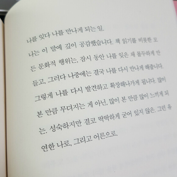 ![]() (p.19) _#책 읽으면 뭐가 좋아요? - 무의미해진 시간들을 밀어내고 '나'로 채워준 것 같아요.