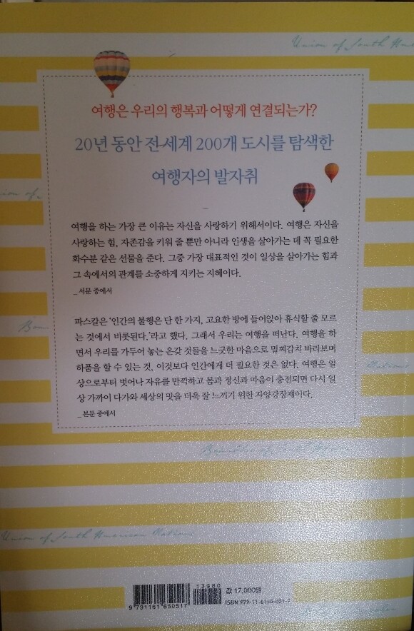 자신을 사랑하고 자존감도 키워주며 궁극적으로는 인생을 살아가는데 꼭 필요한 선물이라는 표현까지 쓰는데 마치 만병통치약 같은 존재가 바로 '여행'이 아닐까 싶어질 정도이다.