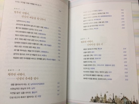 여행을 좋아하기에 여행에 관련된 책자를 보면 먼저 기분이 좋고 흥분된다. 이 책 역시 각 나라의 여행지에 대한 이야기들로 가득 채워져 있었다. 책의 목차를 살펴보니, 내가 가본 나라도 있었고 가보고 싶었던 나라도 있었기에 이 책에 더욱 관심이 생겼다. 저자는 여행사 대표인 손봉기씨로 유럽 단체 배낭여행팀을 20년째 인솔하고 있다. 이처럼 유럽에 관해서는 다른 사람 보다 훨씬 많이 방문한 경험을 가지고 있다. 책의 구성은 크게 세부분으로 “천상의 예술, 인생의 축제, 신에게 한 걸음 더”란 주제로 각 나라에 대한 이야기를 한다. 천상의 예술이란 주제에는 내가 다녀온 일본의 나오시마에 대한 이야기가 있었다. 나오시마는 예전에는 구리 폐기물로 황폐한 땅이었지만 한 회장의 노고로 예술의 섬으로 바뀌었다. 그 곳에는 쿠사마 야요이의 작품인 <노란 호박>이 유명한데 실제로 작품을 봤었기에 책에 실린 사진을 보면서 반가운 마음이 들었다. 이 섬은 예술의 섬답게 군데군데 미술관이 자리잡고 있다. 특히, 이우환 미술관은 1936년 한국에서 태어나서 프랑스와 일본에서 공부하였고, ‘모노하’의 창시자이다. 모노는 기존의 회화 틀에서 벗어나 나무, 돌, 철판 등의 소재를 있는 그대로 제시하는 동양 최초의 현대 미술 운동이다. 같은 한국인의 미술관이여서 더욱 애정이 갔던 미술관으로 기억된다. 이밖에도 가보고 싶은 곳 중의 한 나라인 이집트의 룩소르는 그 곳에 대한 역사적인 이야기들을 함께 알 수 있어서 좋았다. 이곳은 유네스코 세계 문화유산이기에 꼭 한번 가보고 싶다. 책에는 이렇듯 각 나라의 사진과 그림들로 읽는 즐거움을 더해주었다. 이 책은 단순히 여행정보를 제공하는 여행책자를 넘어서서 그 나라를 방문하기 전에 읽어보면 그 곳에 대해 더 잘 이해할 수 있는 유익한 내용들이 많았다. 저자는 여행을 하는 가장 큰 이유는 바로 자신을 사랑하기 위해서라고 한다. 일상을 살아가는 힘과 그 속에서 관계를 소중하게 지키는 지혜를 배울 수 있다는 것이다. 그 말에 공감하면서 이 책은 알찬 내용의 여행 이야기로 가득한 책이라고 추천하고 싶다.