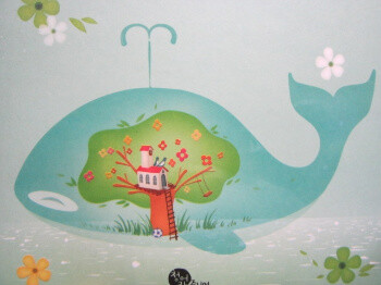 <표지와 제목에 대한 느낌> 제목과 고래를 만지면 촉감이 있다. 에폭시 기법이다. 민트색을 썼기에 차가운 느낌이 안들고 나무위의 집이 무척 사랑스럽다.