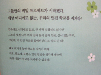 아름다운 학교를 지키기 위한 프로젝트. 그들의 비밀 프로젝트 동안 그들을 힘들게 하던 코니의 비밀을 알게 되고 화해하며 우정믈 느끼게 되는 따뜻한 이야기이다. 방과후 아이들이 모여서 의논하고 이야기 하면서 고민을 나누는 장면은 어릴 적 추억들을 회상하게 해준다. 그리고 약간 힘들게 하던 친구와도 좋은 친구가 되어가는 과정을 보여주어서 해결하는 방법들을 이해하게 해준다. 그들의 우정과 이야기들로 인하여 많은 아이들이 학교 생활에서의 새로운 활력소를 얻게될 것이다. |