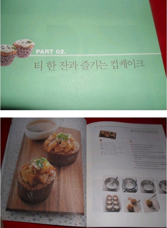 달콤한 오후, 시작합니다에서는 홈베이킹의 기본 재료, 홈베이킹의 기본 도구부터 시작해 스펀지 케이크, 파운드 케이크, 치즈 케이크 타르트, 스팀 케이크, 쿠키, 생크림, 아이싱, 버터크림, 커스터드크림 등을 만드는 법을 소개하고 있다. 개인적으로는 베이킹의 왕초보인탓에 이 부분이 가장 유용한 정보다. ![]() 티 한 잔과 즐기는 컵캐아크부터 다양한 컵케이크 레시피가 등장한다. 재료를 달리해 토핑을 달리해 응용하면 무궁무진한 컵케이크가 탄생될 것 같다. 사과조림 푸짐하게 올린 캐러멜애플컵케이크, 생크림 한 가득올린 쿠키앤크림컵케이크는 보기만해도 달콤함이 느껴져 먹고싶어진다. 건강 생각한다면 녹차컵케이크도 좋을 것 같고, 티라미수컵케이크도 꼭 맛보고 싶다. 컵케이크와 잘어울리는 홍차에 대한 정보도 들어있다.