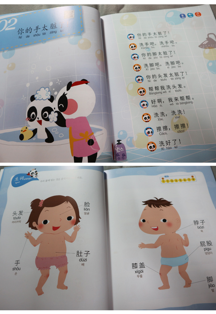 저녁식사 후 씻고 정리하고 간식도 먹으며 저녁시간을 보내는 판다곰 가족의 이야기를 시간의 흐름에 따라가며 자연스럽게 일상속 중국어를 배울수 있어요 ![]() ![]()