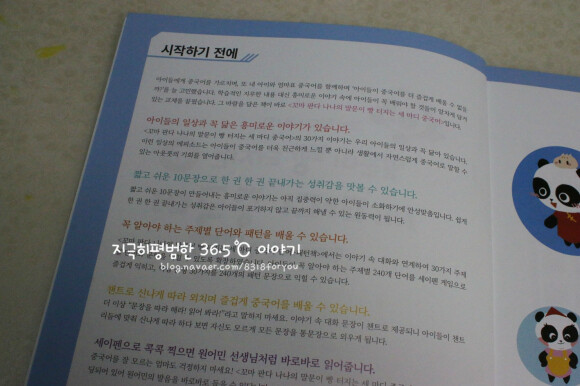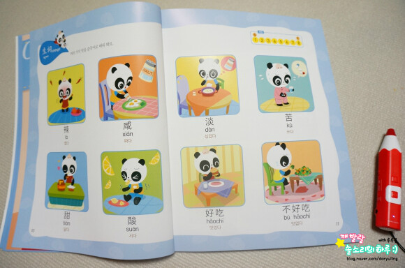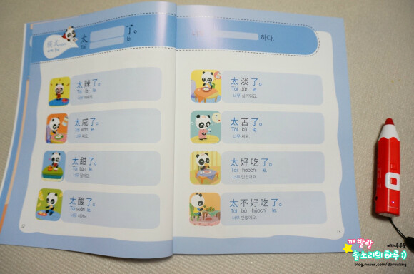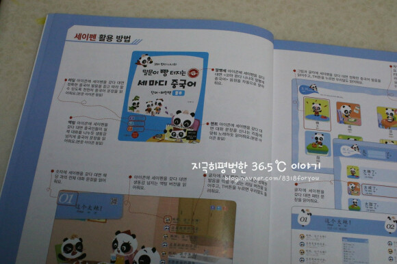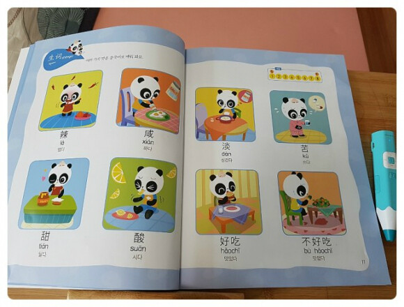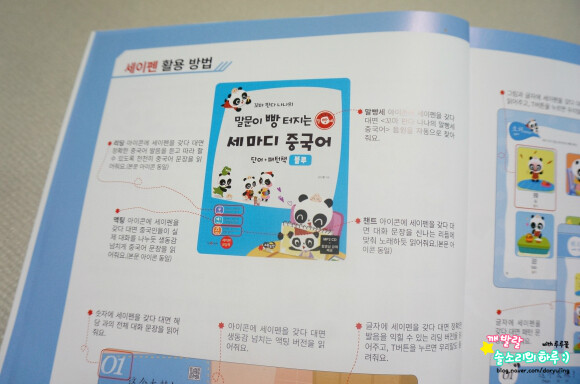 색깔별로 구성된 꼬마판다 나나의 말문이 빵 터지는 중국어. 제가 받은건 블루 책자이구요. 노랑, 빨강 책도 있어요. 세이펜이 되서 제가 참 유용하게 활용하는 책이랍니다.