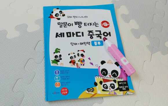 올해 목표 중에 하나가 진주군과 엄마표 책육아를 제대로 하는 거에요. 엄마표 책육아엔 제2외국어도 포함되어 있지요. 제2외국어를 가르치지엔... 여미가 너무 부족하지만, 좋은 교제와 세이펜이 있다면 여미도 함께 공부할수 있지않을까 싶어요!! 말을 많이하기 시작하면서 다양한 언어에 대해서도 많은 호기심을 갖는 진주군이라 이때다 싶어 요즘 핫 하다는 꼬마판다 나나의 말문이 빵 터지는 세마디 중국어(일명 말빵세)를 만나봤어요.
